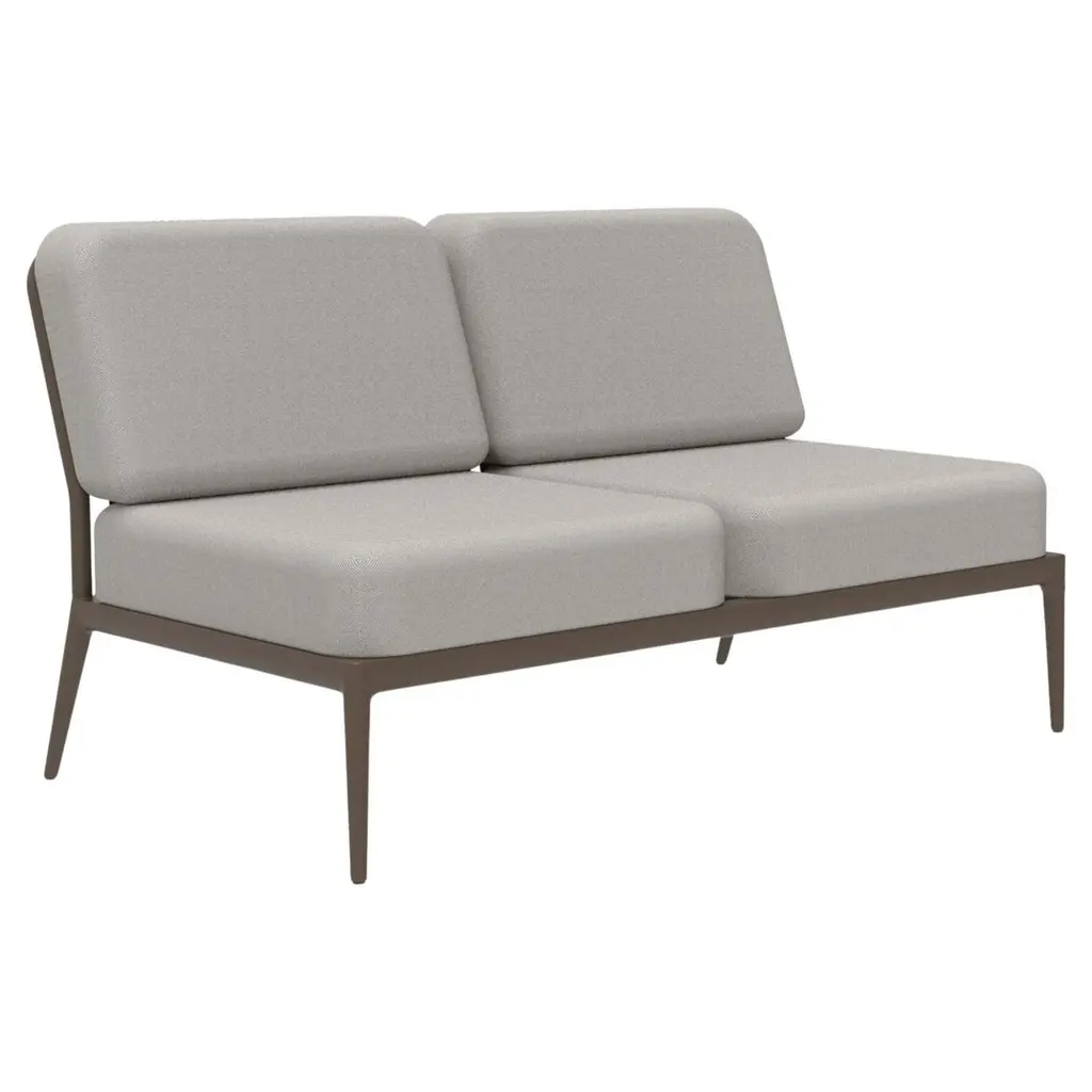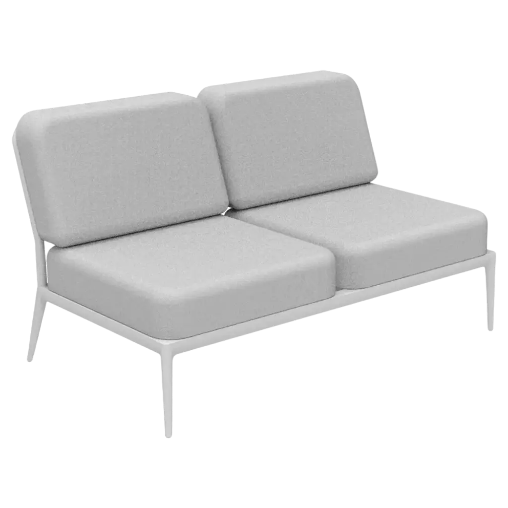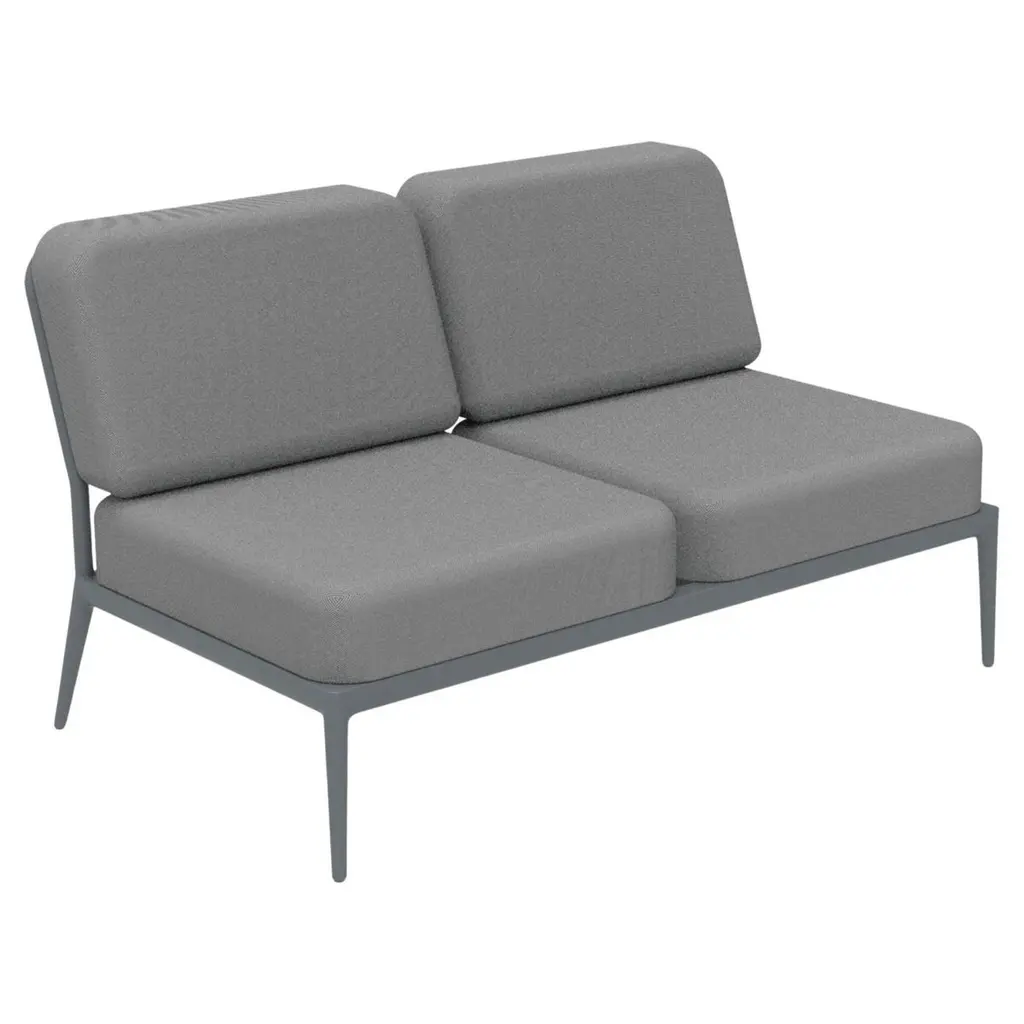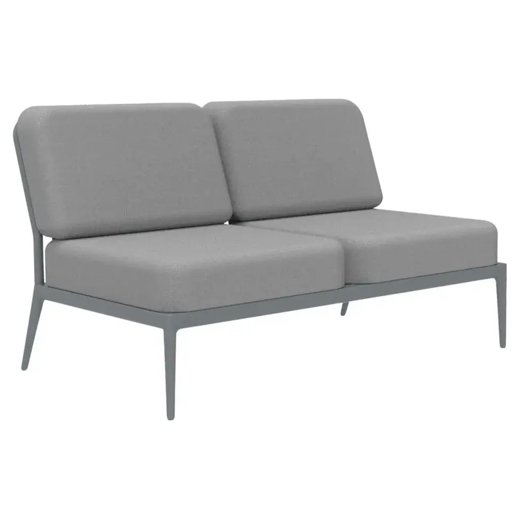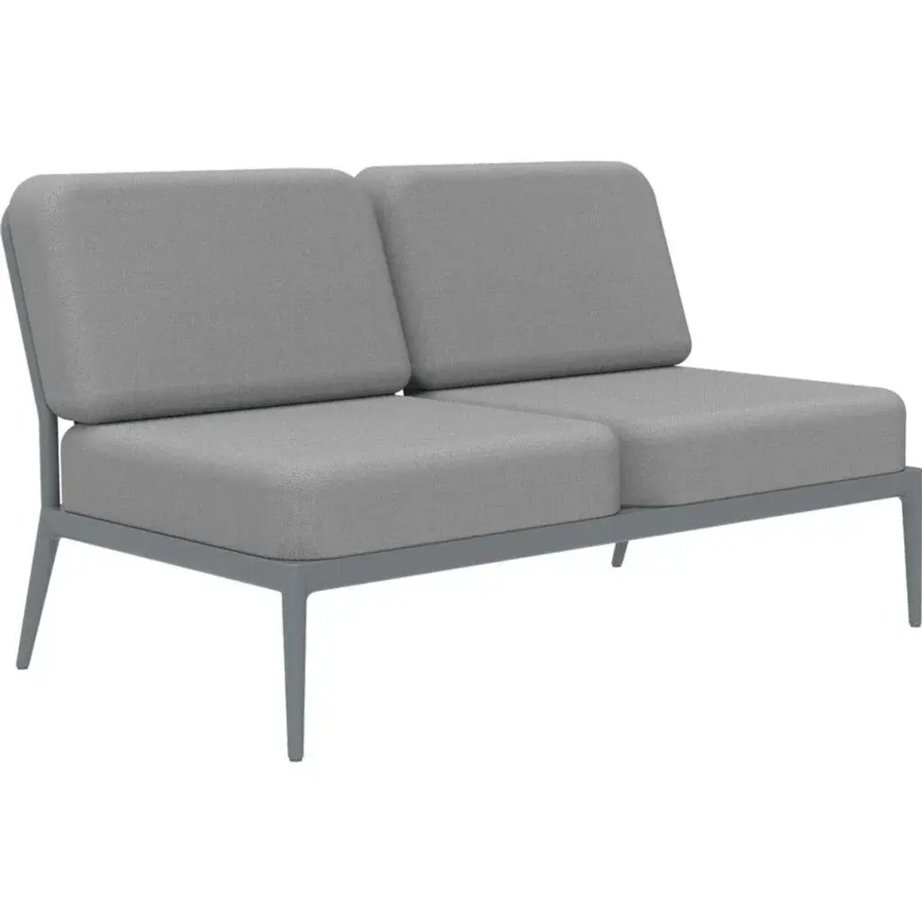 Ribbons grey double central modular sofa by mowee dimensions: d83 x w136 x h81 cm material: aluminum, and upholstery. Weight: 27 kg. An unmistakable collection for its beauty and robustness. A tribute to the valencian manufacturing tradition as a challenge to innovation, making it sustainable and durable. A collection with details that make it unique. We discover its most representative side, ribbons. Engineering and tradition come together, thus achieving a collection with its own character.