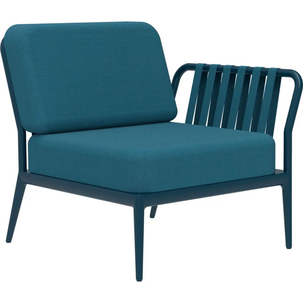 Ribbons navy left modular sofa by MOWEEDimensions: D83 x W80 x H81 cm (seat height 42 cm)Material: Aluminum and upholsteryWeight: 19 kgAlso available in different colours and finishes.An unmistakable collection for its beauty and robustness. A tribute to the Valencian manufacturing tradition as a challenge to innovation, making it sustainable and durable. A collection with details that make it unique. We discover its most representative side, Ribbons. Engineering and tradition come together, thus achieving a collection with its own character.Möwee is part of the work, effort and commitment of Gaviota, a leading company in the outdoor sector. It was set up as an independent venture to broaden horizons in the outdoor furniture world, with its own distinctive character and way of doing things. Freshness, simplicity, quality and design are at the heart of its DNA.