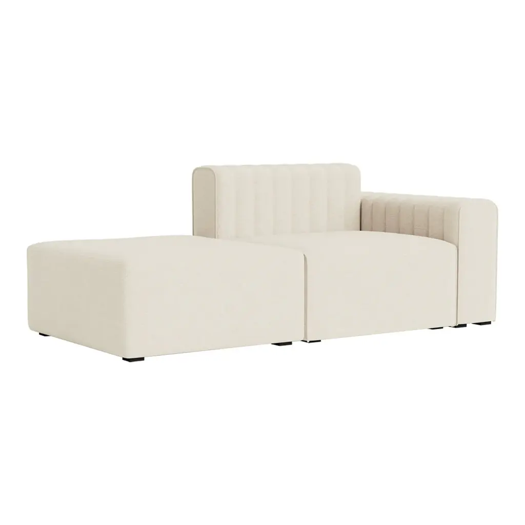 The word RIFF comes from the world of jazz music, and means “to borrow and elaborate on". The RIFF sofa is a modern interpretation of the classic modular sofa into a sculptural piece of furniture. The lamella upholstery adds a certain rythme to the minimalistic sofa modules, and turns the modular sofa into a refined piece of furniture.