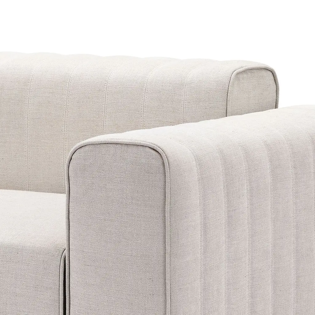 The word RIFF comes from the world of jazz music, and means “to borrow and elaborate on". The RIFF sofa is a modern interpretation of the classic modular sofa into a sculptural piece of furniture. The lamella upholstery adds a certain rythme to the minimalistic sofa modules, and turns the modular sofa into a refined piece of furniture.