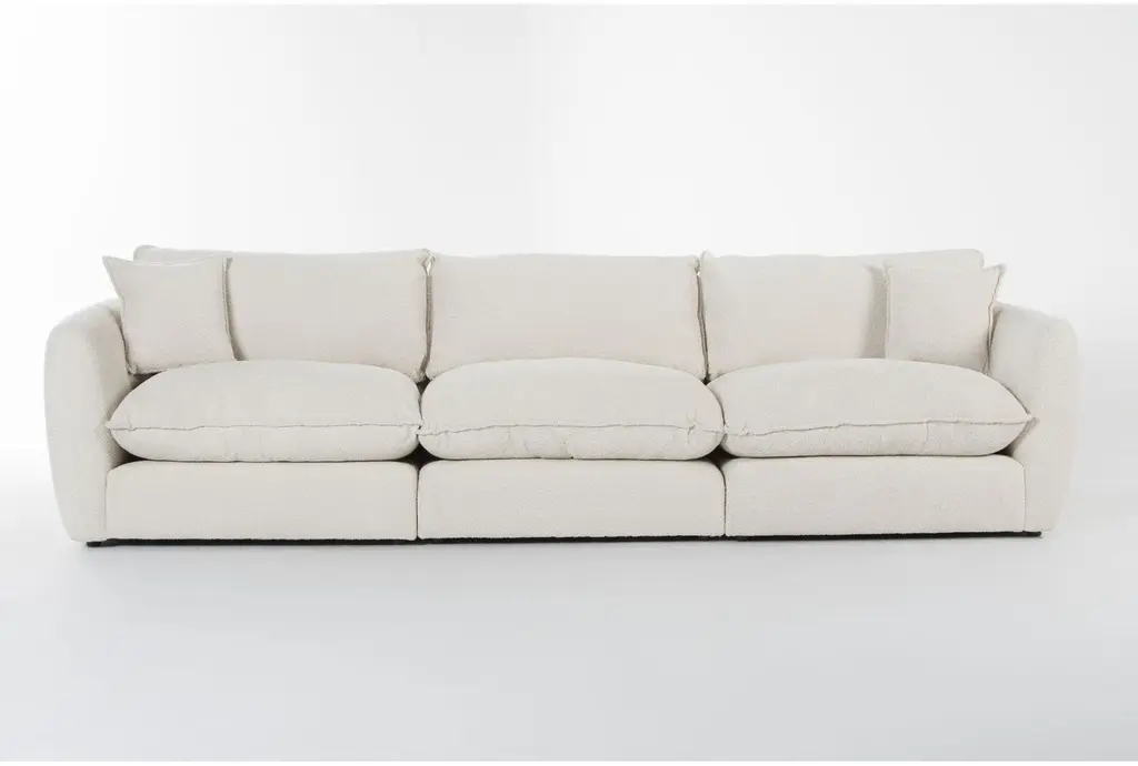 Ruby Cream Beige Natural Boucle Fabric Modular 3 Piece 134" Sofa | Loose Reversible Back