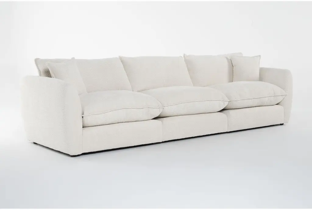 Introducing the Ruby Cream Beige Natural Boucle Fabric Modular 3 Piece 134" Sofa, designed for those who cherish casual comfort in their living spaces. This modular sofa features a soft cream fabric that enhances its cloud-like comfort, making it the perfect addition to any living room. Nate Berkus + Jeremiah Brent have infused their signature style into this versatile and cozy sofa, ensuring it fits seamlessly into your home.