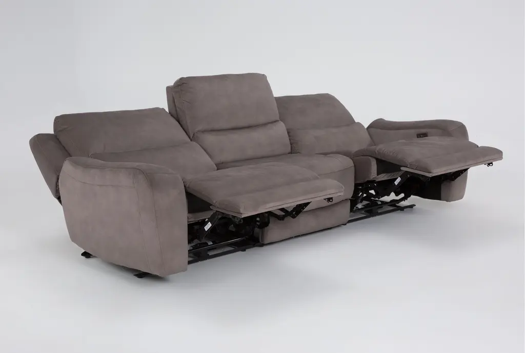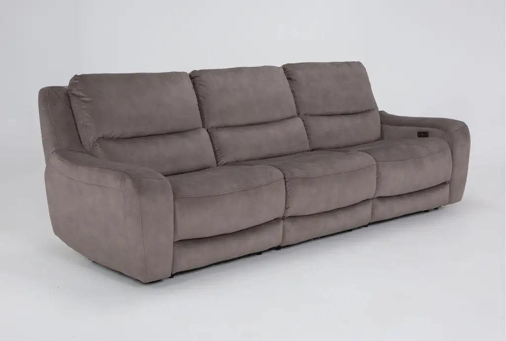 Experience the ultimate in comfort and convenience with the Ryder Grey Fabric 114" 3 Piece Power Reclining Modular Sofa. Designed for your living room, this casual modular sofa offers a luxurious seating experience with its power reclining feature and built-in USB port, ensuring you can relax and stay connected effortlessly.