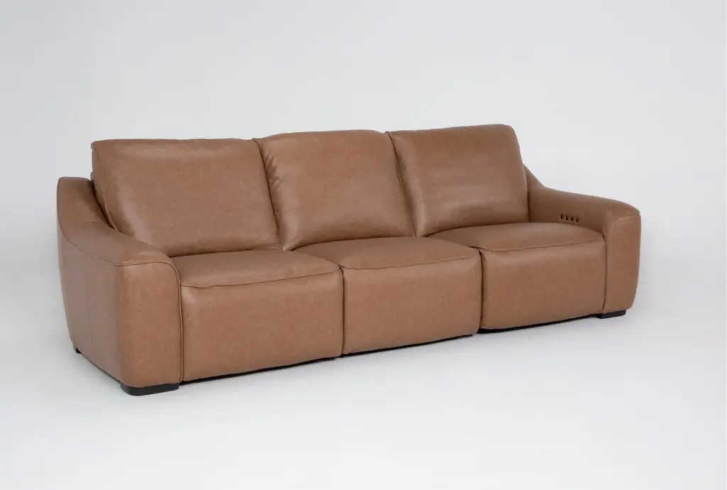 Ryker Leather 3 Piece Power Triple Reclining Modular Sofa With Power Headrest | Adjustable Headrests