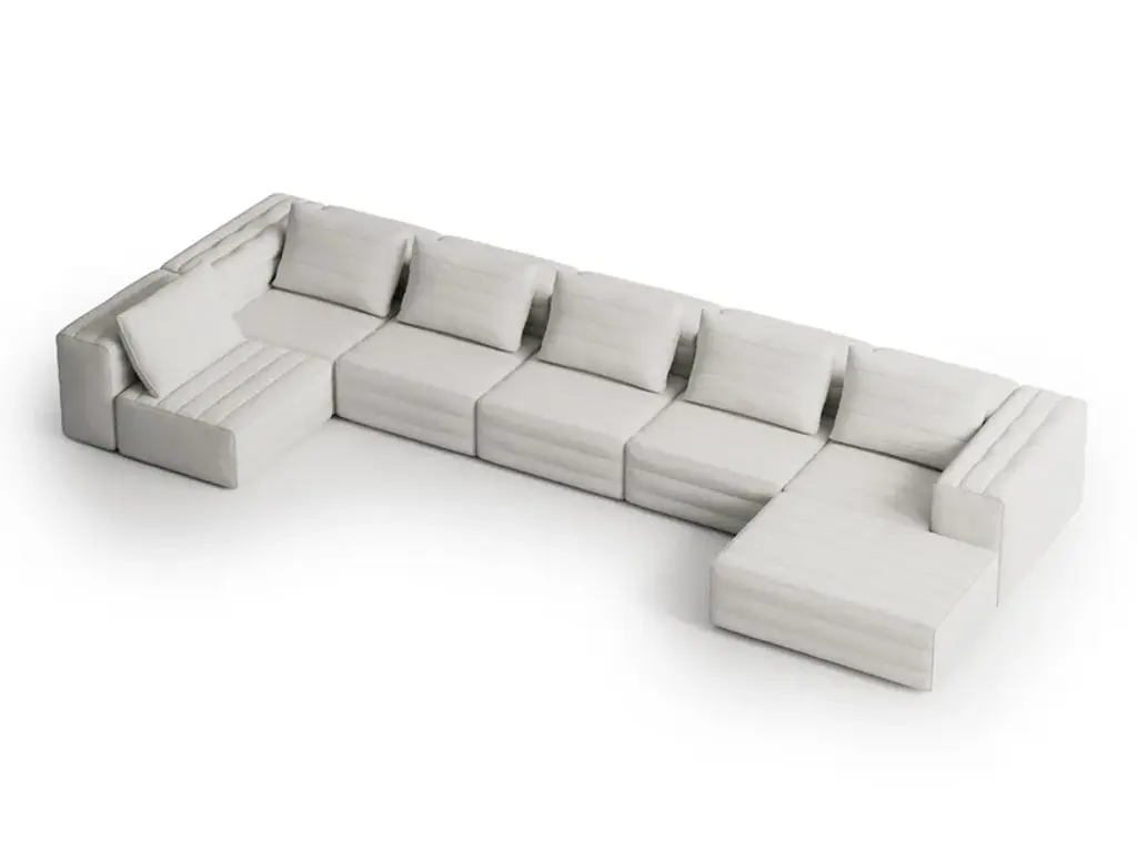 Samet B is a composition of the Samet sofa, with three seats.Samet is a modular sofa upholstered in polyurethanefoam, removable cover. Attention: With KINGSMAN and CORDUROY fabrics, the direction of the stripes runs perpendicular to the quilting. With QUILT MALTA, QUILT VELOUR and 3D fabric, there is no quilting. 3D fabric also provides only inner seam.The Samet modular sofa has no rules, it is a multifunctional and configurable product that places the person as an active subject in the composition of their own space, encouraging them to experiment with new forms of use. Cosy and hospitable seats are juxtaposed with each other in regular and soft geometries, a dynamic design to create multiple types of more or less informal seating. Details, stitching and matelassé enrich a simple modularity that creates infinite compositions with a timeless aesthetic, from the most classic sofa to the most multifaceted, from the tidiest to the most disjointed.