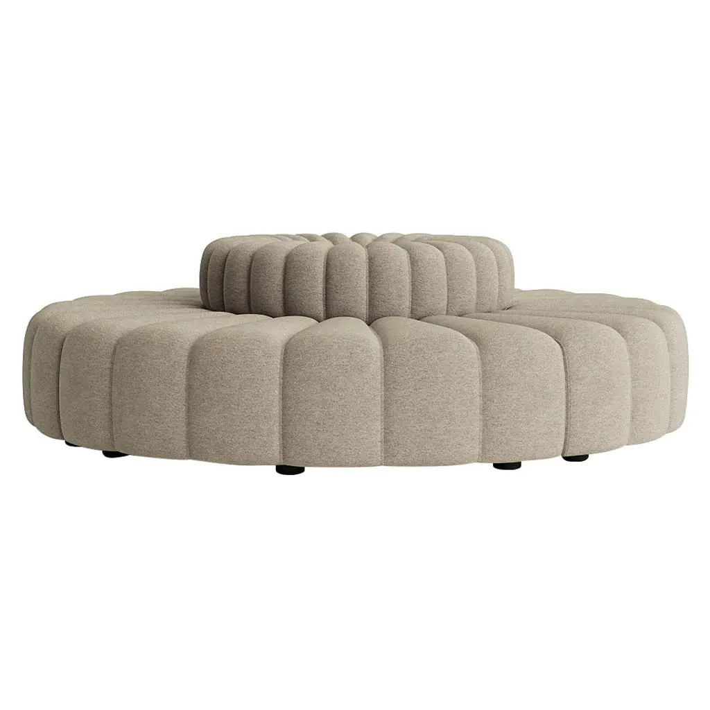 Inspired by the bold aesthetics of the 1970s, the Studio Modular Sofa from Nor11 is characterized by its fluted upholstery and soft, inviting lines. The system includes multiple module variations that can be arranged to form different setups, whether for small living areas or larger social spaces. The loose armrest cushions are movable yet dense, boasting ample customization without sacrificing a comfortable and sturdy seat. Modules can be linked using a click-link system and are available in a wide range of high-quality fabrics and leather options.