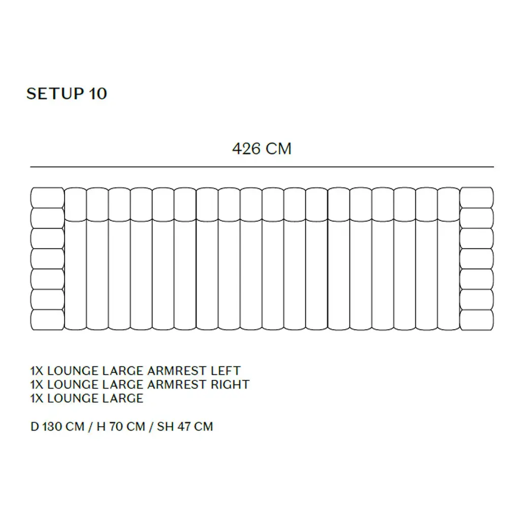 Studio is defined by its bold fluted upholstery characteristics inspired by late 70s sofa styles, refined in a contemporary way, giving the series a unique identity. Featuring a versatile yet simple system of modules, Studio offers a variety of options to form numerous settings, shapes, and styles, seamlessly blending into all sorts of environments. With a 360-degree finish, each module can be a stand-alone piece or reversed to create a two-sided sofa. The movable armrest cushion adds convenience and adaptability and the soft foam mix ensures ultimate comfort. To create a cohesive expression and accommodate diverse interior needs, the collection also upholds a bench and pouf. Setup Includes: [1] Large Lounge w/ Left Armrest [1] Large Lounge w/ Right Armrest [1] Large Lounge Center