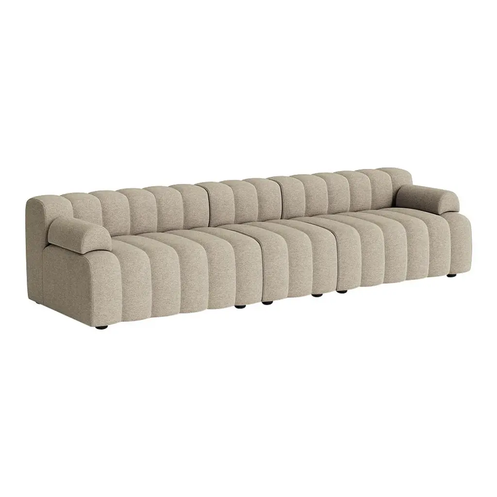 Introducing Studio, the newest sofa landscape in the NORR11 collection - a tribute to the timeless era of the 70s and its expressive aesthetics. Featuring a versatile yet simple system of modules, appearing in limitless options to form numerous settings, shapes and styles, blending into all sort of environments. Whether a small living setting or a spacious public site. Studio is defined by its bold fluted upholstery characteristics inspired by late 70s sofa styles, refined in a contemporary way - giving the series a unique identity. Each module of Studio articulates soft and welcoming lines ideally suited for living, socialising and relaxing where one can feel totally at ease. The armrest cushion is loose and can be moved and repositioned across the series, balancing the fluted upholstery. Setup Includes: [2] Large Center [1] Small Center [2] Armrest
