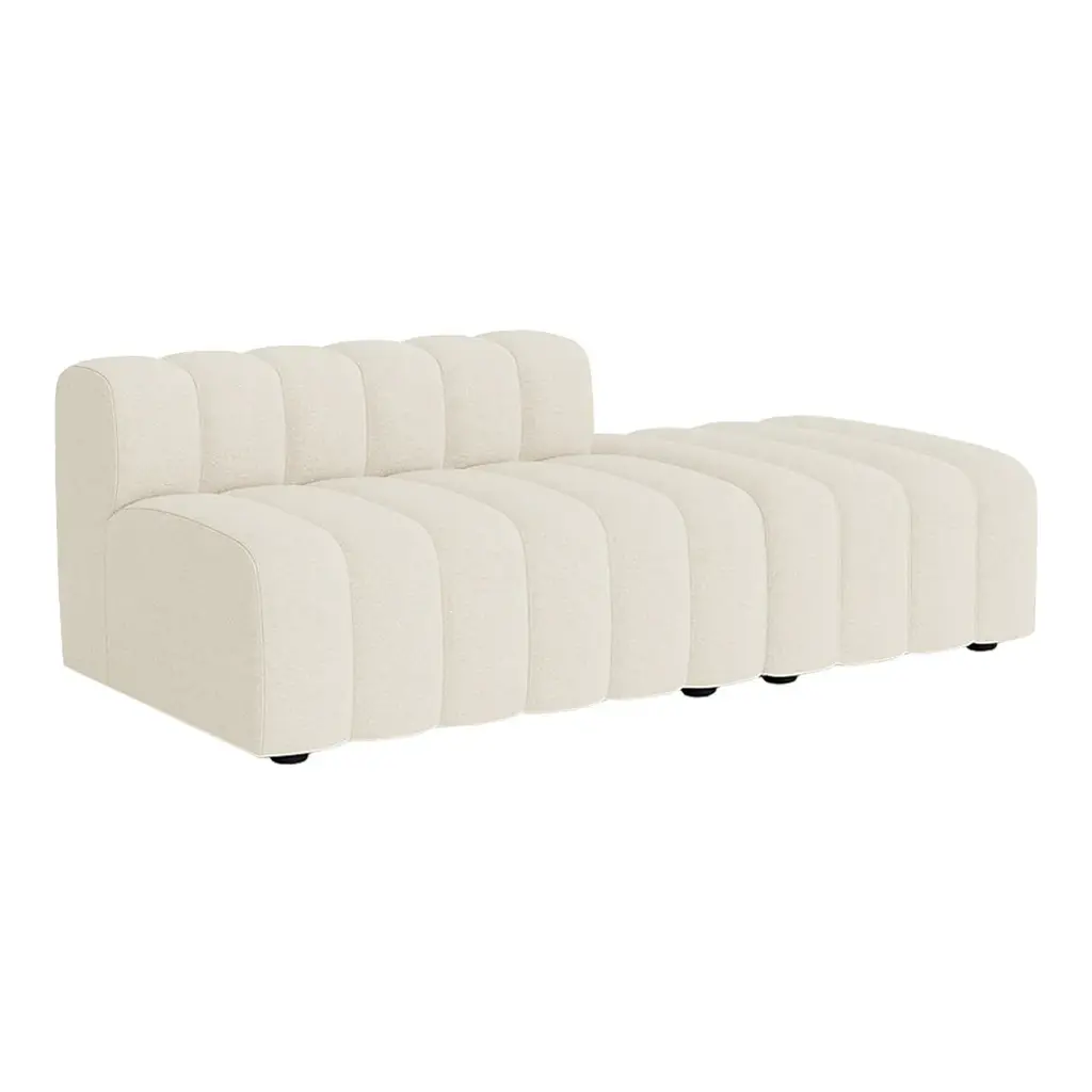 Introducing Studio, the newest sofa landscape in the NORR11 collection - a tribute to the timeless era of the 70s and its expressive aesthetics. Featuring a versatile yet simple system of modules, appearing in limitless options to form numerous settings, shapes and styles, blending into all sort of environments. Whether a small living setting or a spacious public site. Studio is defined by its bold fluted upholstery characteristics inspired by late 70s sofa styles, refined in a contemporary way - giving the series a unique identity. Each module of Studio articulates soft and welcoming lines ideally suited for living, socialising and relaxing where one can feel totally at ease. The armrest cushion is loose and can be moved and repositioned across the series, balancing the fluted upholstery. Setup Includes: [1] Classic Ottoman [1] Large Center