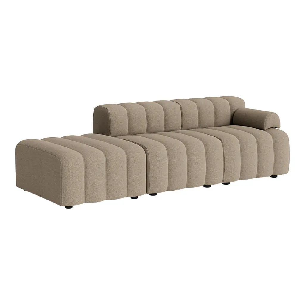 Introducing Studio, the newest sofa landscape in the NORR11 collection - a tribute to the timeless era of the 70s and its expressive aesthetics. Featuring a versatile yet simple system of modules, appearing in limitless options to form numerous settings, shapes and styles, blending into all sort of environments. Whether a small living setting or a spacious public site. Studio is defined by its bold fluted upholstery characteristics inspired by late 70s sofa styles, refined in a contemporary way - giving the series a unique identity. Each module of Studio articulates soft and welcoming lines ideally suited for living, socializing and relaxing where one can feel totally at ease. The armrest cushion is loose and can be moved and repositioned across the series, balancing the fluted upholstery.