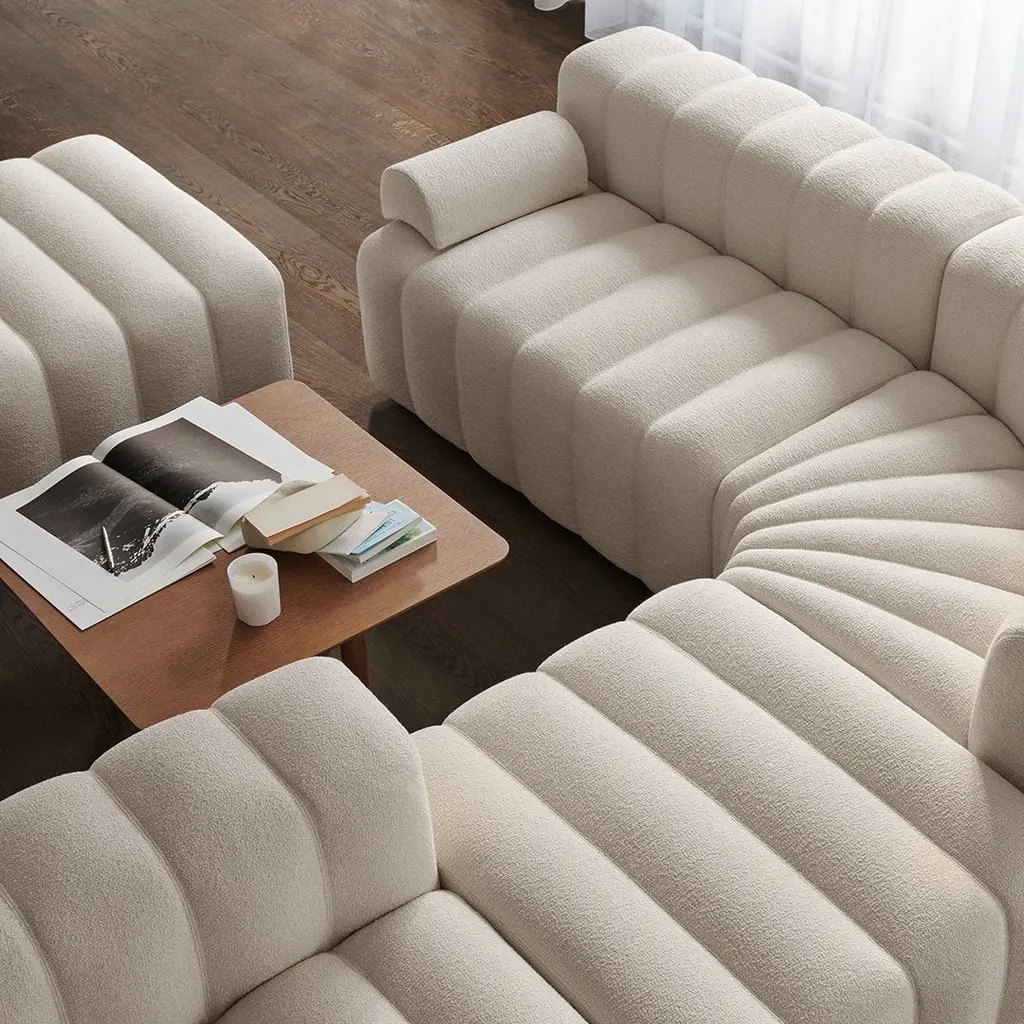 Introducing Studio, the newest sofa landscape in the NORR11 collection - a tribute to the timeless era of the 70s and its expressive aesthetics. Featuring a versatile yet simple system of modules, appearing in limitless options to form numerous settings, shapes and styles, blending into all sort of environments. Whether a small living setting or a spacious public site. Studio is defined by its bold fluted upholstery characteristics inspired by late 70s sofa styles, refined in a contemporary way - giving the series a unique identity. Each module of Studio articulates soft and welcoming lines ideally suited for living, socializing and relaxing where one can feel totally at ease. The armrest cushion is loose and can be moved and repositioned across the series, balancing the fluted upholstery.