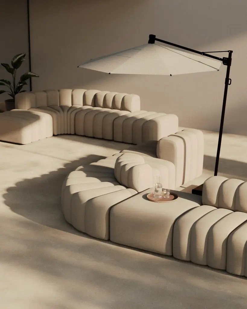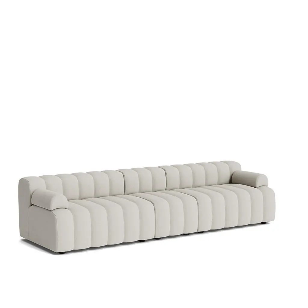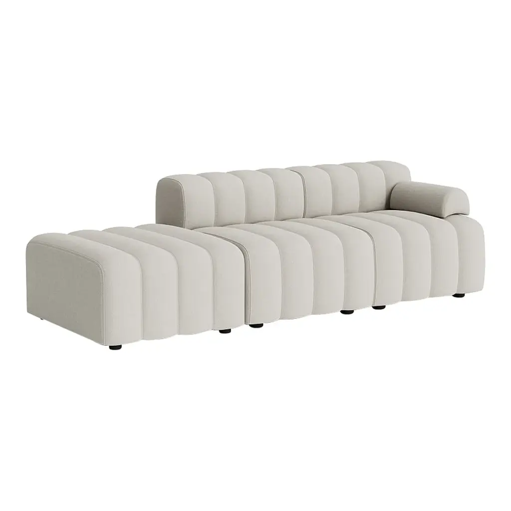 STUDIO Sofa by Kristian Sofus Hansen & Tommy Hyldahl for Nor11OutdoorSetup 3 (2x large,1x small, 2x armrest):L300cm / P96cm / H70cm / Seating H42cmModular sofa: assemble different modules to create your compositionVARIATIONSSunbrella Savane: Coconut J233 or Sunbrella Savane: Whisper J349Introducing Studio, the newest sofa landscape in the NORR11 collection - a tribute to a timeless era of the 70s and its expressive aesthetics. Featuring a versatile but simple system of modules, appearing in limitless options to form numerous settings, shapes and styles to adhere to all types of environments. Whether for a small living setting or spacious public site.Studio is defined by its bold fluted upholstery characteristics inspired by late 70s sofa styles, refined in a contemporary way - giving the series a unique identity. Each module of Studio articulates soft and welcoming lines ideally suited for living, socialising and relaxing where one can feel totally at ease. The armrest cushion is loose and can be moved and repositioned across the series, balancing the fluted upholstery.