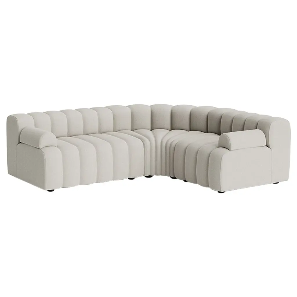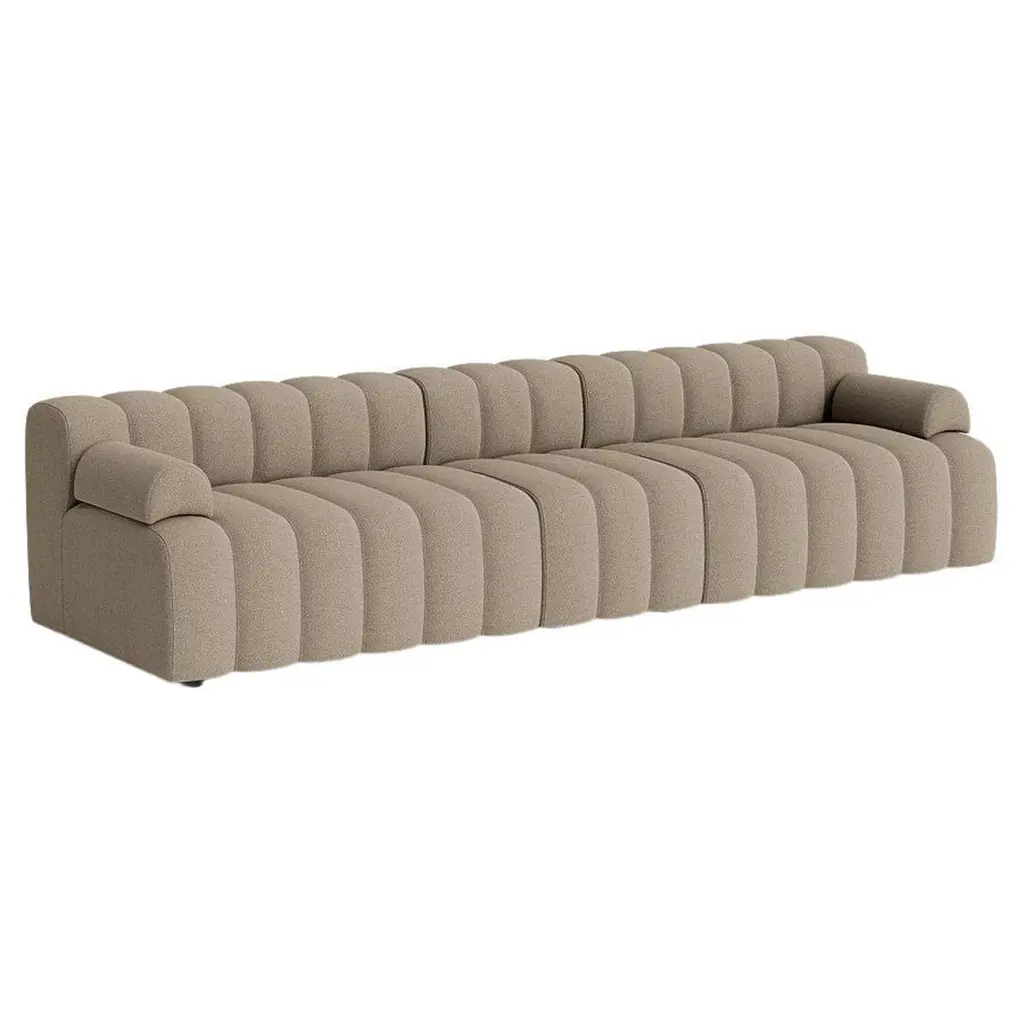 STUDIO sofa by Kristian Sofus Hansen & Tommy Hyldahl for Nor11Measures: Setup 3 (2x large,1x small, 2x armrest):L 300cm / P 96cm / H 70cm / Seating H 42cmModular sofa: assemble different modules to create your compositionWide range of fabrics and colorsCAT 1: FameCAT 2: Barnum, Breeze Fusion, SavoyCAT 3: Fiord, Hallingdal, Savanna, Zero, Steelcut Trio, Moss, SafireCAT 4: BaruCAT 5: Dunes, Spectrum/NoirIntroducing Studio, the newest sofa landscape in the NORR11 collection - a tribute to a timeless era of the 70s and its expressive aesthetics. Featuring a versatile but simple system of modules, appearing in limitless options to form numerous settings, shapes and styles to adhere to all types of environments. Whether for a small living setting or spacious public site.Studio is defined by its bold fluted upholstery characteristics inspired by late 70s sofa styles, refined in a contemporary way - giving the series a unique identity. Each module of Studio articulates soft and welcoming lines ideally suited for living, socialising and relaxing where one can feel totally at ease. The armrest cushion is loose and can be moved and repositioned across the series, balancing the fluted upholstery.