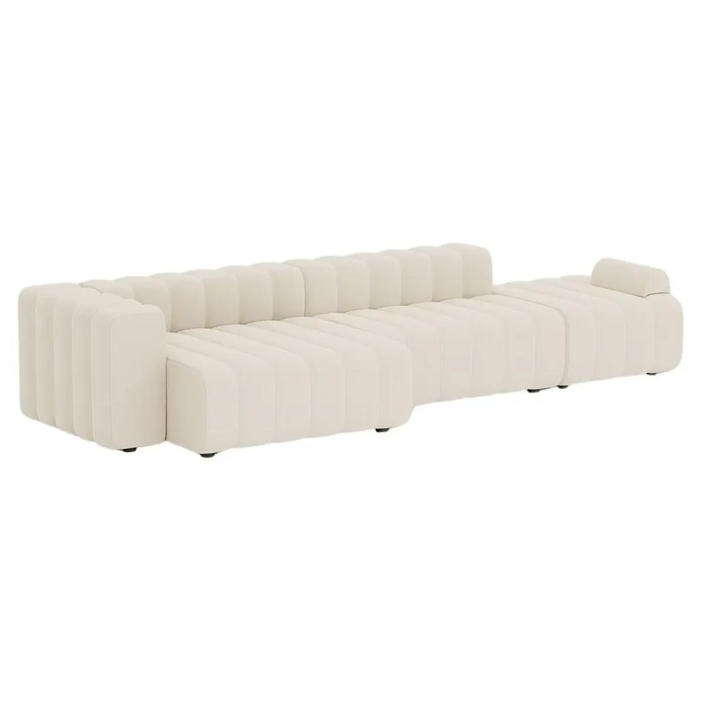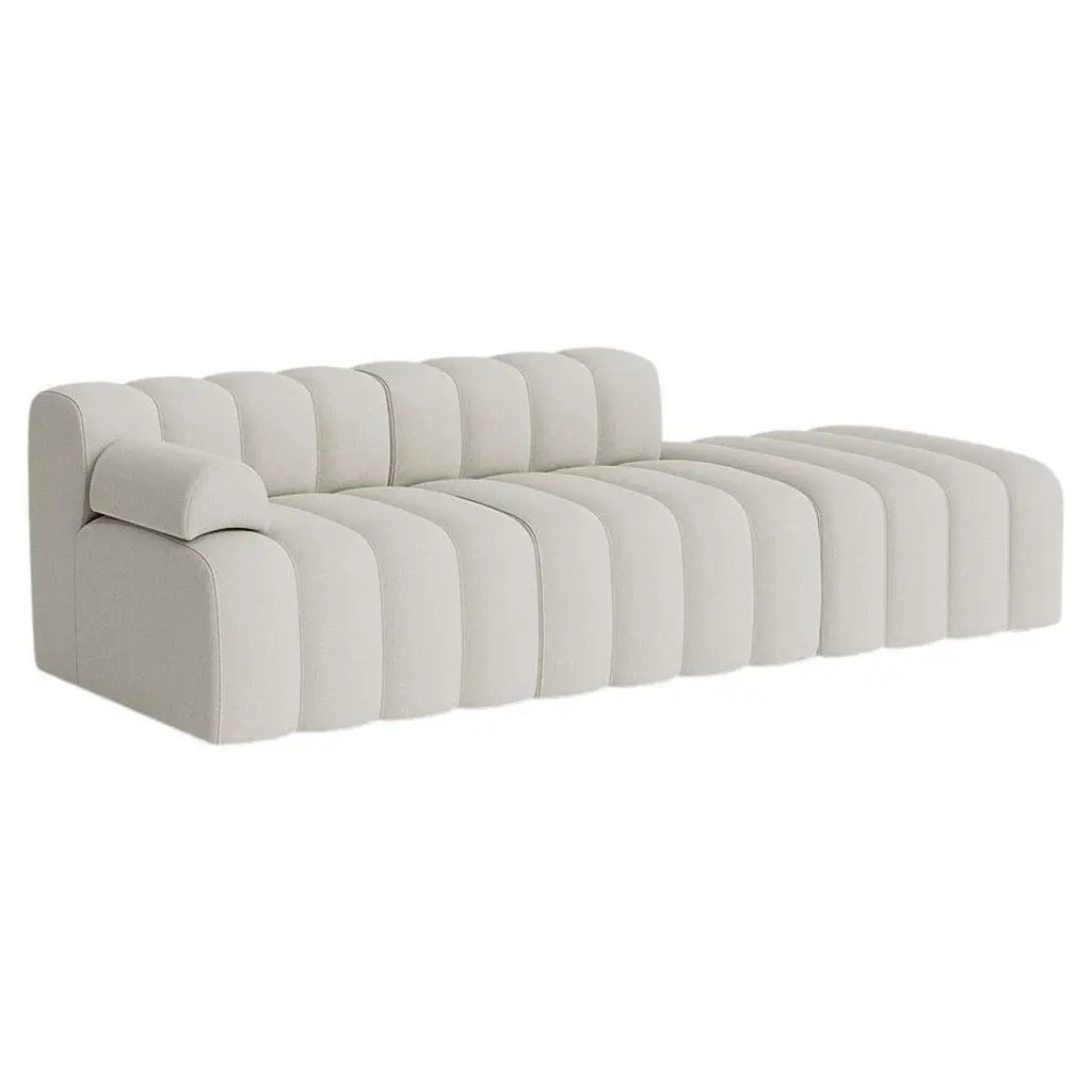 STUDIO Sofa by Kristian Sofus Hansen & Tommy Hyldahl for Nor11Setup 3 (2x large,1x small, 2x armrest):L300cm / P96cm / H70cm / Seating H42cmModular sofa: assemble different modules to create your compositionWide range of fabrics and colorsCAT 1: FameCAT 2: Barnum, Breeze Fusion, SavoyCAT 3: Fiord, Hallingdal, Savanna, Zero, Steelcut Trio, Moss, SafireCAT 4: BaruCAT 5: Dunes, Spectrum/NoirIntroducing Studio, the newest sofa landscape in the NORR11 collection - a tribute to a timeless era of the 70s and its expressive aesthetics. Featuring a versatile but simple system of modules, appearing in limitless options to form numerous settings, shapes and styles to adhere to all types of environments. Whether for a small living setting or spacious public site.Studio is defined by its bold fluted upholstery characteristics inspired by late 70s sofa styles, refined in a contemporary way - giving the series a unique identity. Each module of Studio articulates soft and welcoming lines ideally suited for living, socialising and relaxing where one can feel totally at ease. The armrest cushion is loose and can be moved and repositioned across the series, balancing the fluted upholstery.