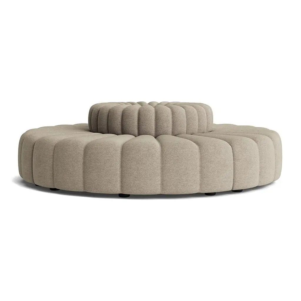 Studio sofa by Kristian Sofus Hansen & Tommy Hyldahl for Nor11Setup 6 (4 x curve ):Measures: D. 220 cm / H. 70 cm / SH. 47 cmModular sofa: assemble different modules to create your compositionWide range of fabrics and colorsCAT 1: FameCAT 2: Barnum, Breeze Fusion, SavoyCAT 3: Fiord, Hallingdal, Savanna, Zero, Steelcut Trio, Moss, SafireCAT 4: BaruCAT 5: Dunes, Spectrum/NoirIntroducing Studio, the newest sofa landscape in the NORR11 collection - a tribute to a timeless era of the 70s and its expressive aesthetics. Featuring a versatile but simple system of modules, appearing in limitless options to form numerous settings, shapes and styles to adhere to all types of environments. Whether for a small living setting or spacious public site.Studio is defined by its bold fluted upholstery characteristics inspired by late 70s sofa styles, refined in a contemporary way - giving the series a unique identity. Each module of Studio articulates soft and welcoming lines ideally suited for living, socialising and relaxing where one can feel totally at ease. The armrest cushion is loose and can be moved and repositioned across the series, balancing the fluted upholstery.