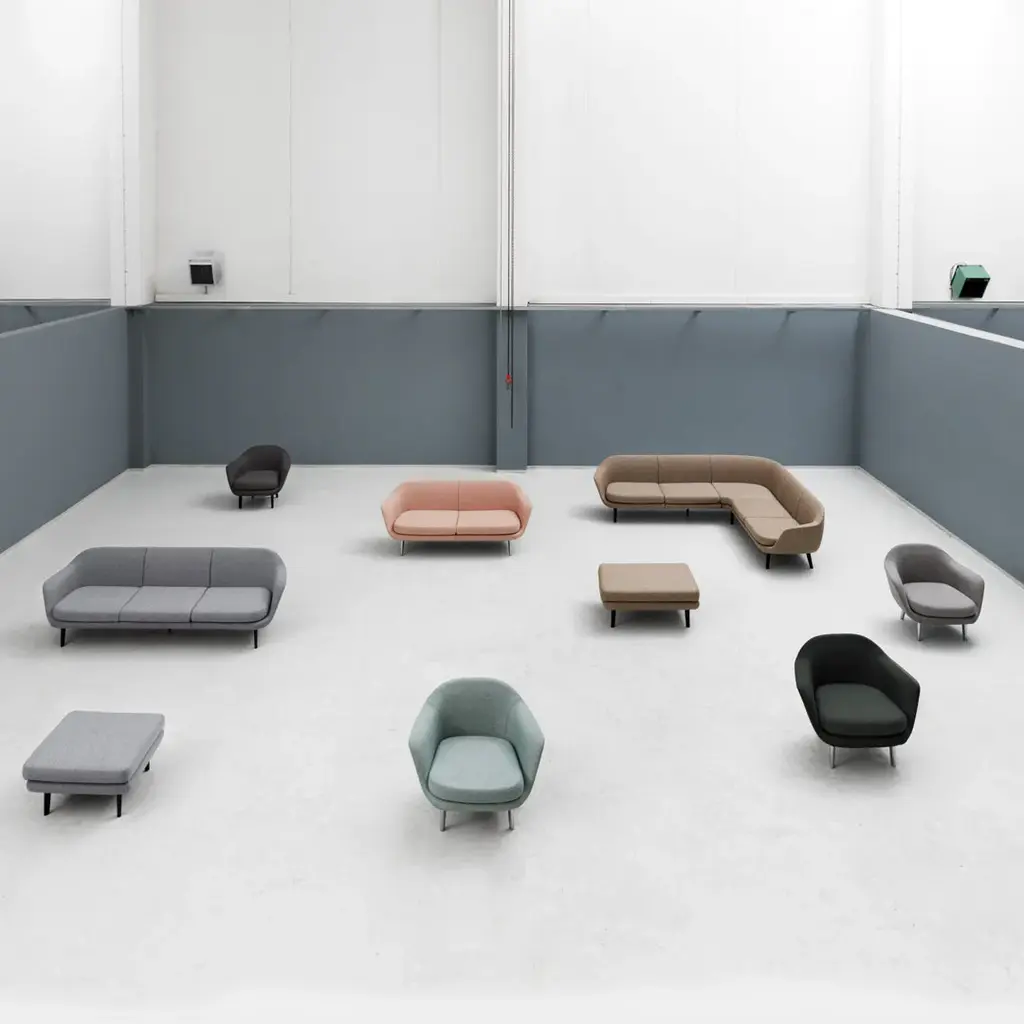Two, four, nine modules? Whatever the number, the sum is as follows: a well-proportioned sofa design that stands as the epitome of contemporary elegance. Sum is the name of Normann Copenhagen’s take on a light modular sofa, which has the same complete appearance, whether it is set up in a two-seater version or as a several metre long lounge dream. The design is stringent and focused, but invitingly open in character: elegant and resolute as a wingspread stretching out into the air, the sofa spreads out its armrests and invites you into its soft and homely space. Slim, angled legs lift it from the floor in a delicate counterpoint to the generous contours of the back and armrest. Sum’s contrasting design facets are framed by a harmonious modular concept. In a seemingly effortless flow, the lines of the modules meet and merge into an integrated whole. Also the rear has been taken into consideration, so the sofa can stand in the middle of a room and delight the eye from all angles. The Sum sofa can be built up from eight different modules, angled or straight, with open or closed sides. Add up the parts you want into a customised sofa design and create welcoming and vibrant lounge areas, supplemented by the series’ matching armchair.