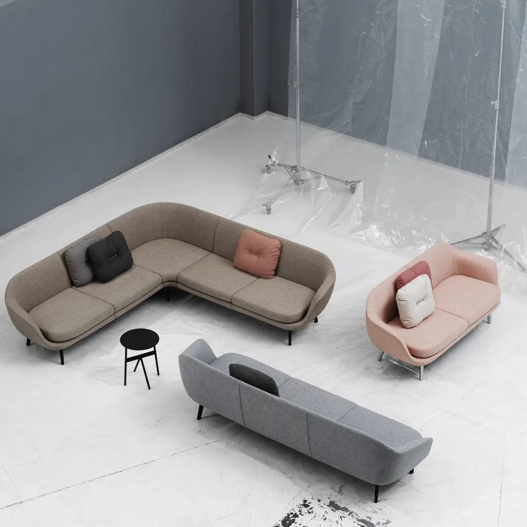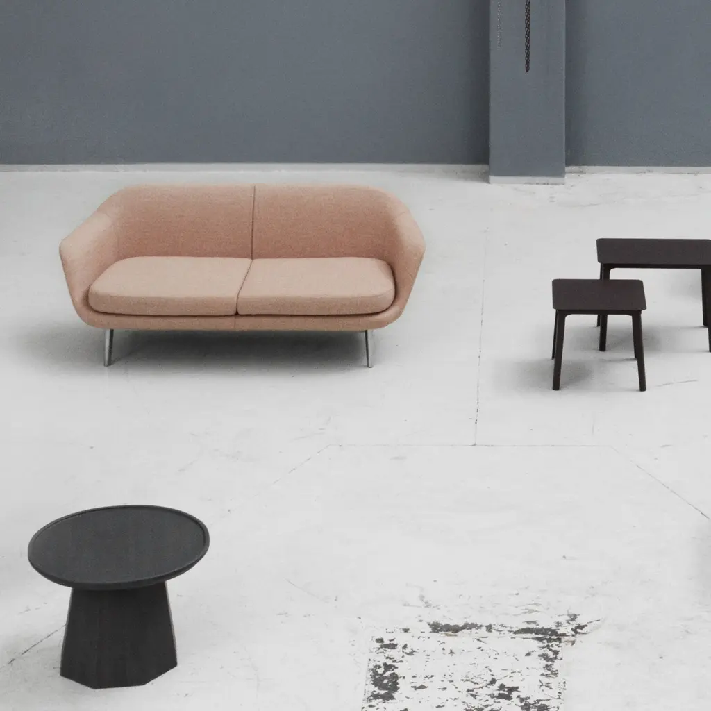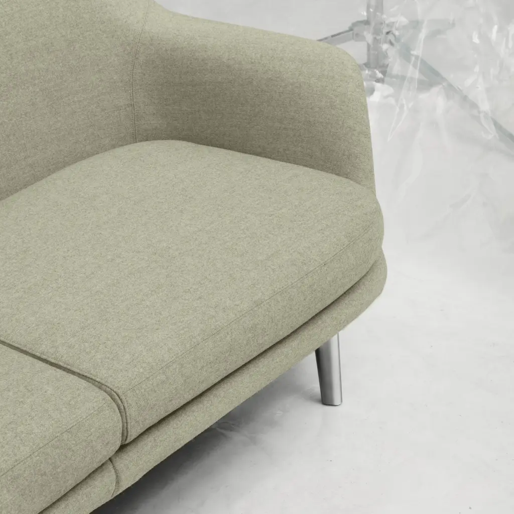 Stringent but invitingly open is how Normann Copenhagen describes Sum, its lightly scaled modular sofa available in easily accessible preconfigured edits. Simon Legald's seating beckons with its spread-out armrests and generous contours while slim, angled aluminum legs airily lift it from the floor. Available in 2-, 3- and 4-seater versions, the sofa has a harmonious look front and back so it can stand in the middle of a room. With custom upholstery in a fine textile or leather, the modules are made of soft molded PU foam with a steel frame and topped with lush foam cushioning.