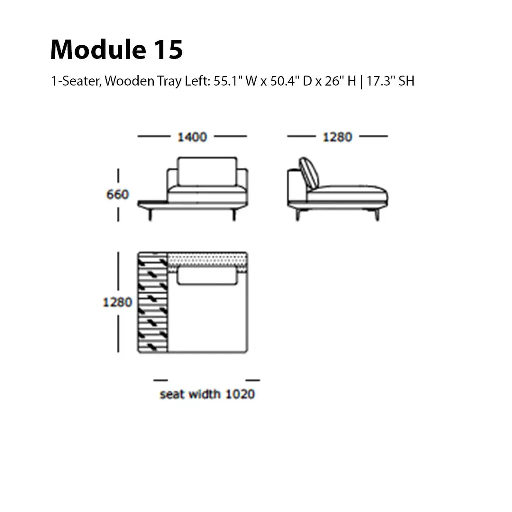 Designed with complementary trays in black stained oak, the Surface Sofa prompts a new take on modularity with engaging levels and dimensions that speak volumes in any spatial context. Thin legs in black powder-coated aluminium add the finishing touches, making the modules soar gracefully above the ground.
