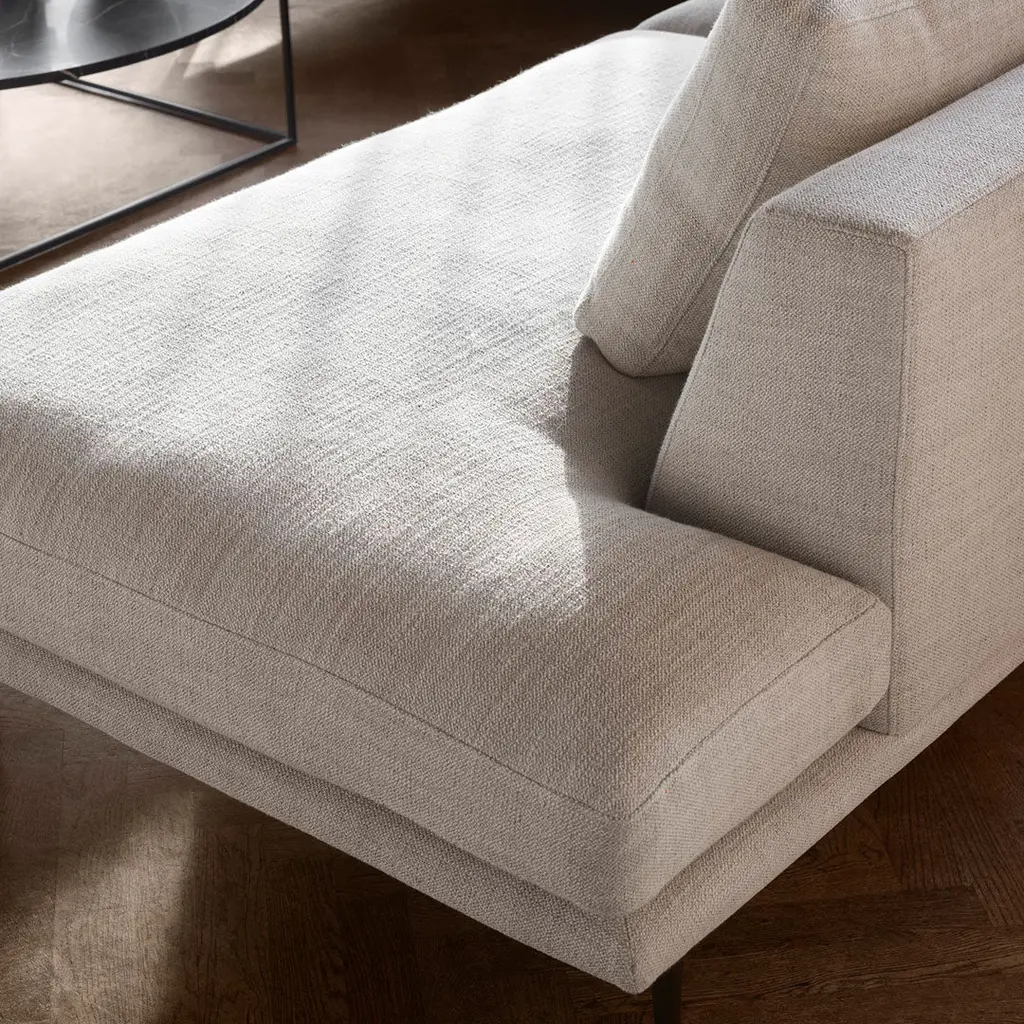 Designed with complementary trays in black stained oak, the Surface Sofa prompts a new take on modularity with engaging levels and dimensions that speak volumes in any spatial context. Thin legs in black powder-coated aluminium add the finishing touches, making the modules soar gracefully above the ground.