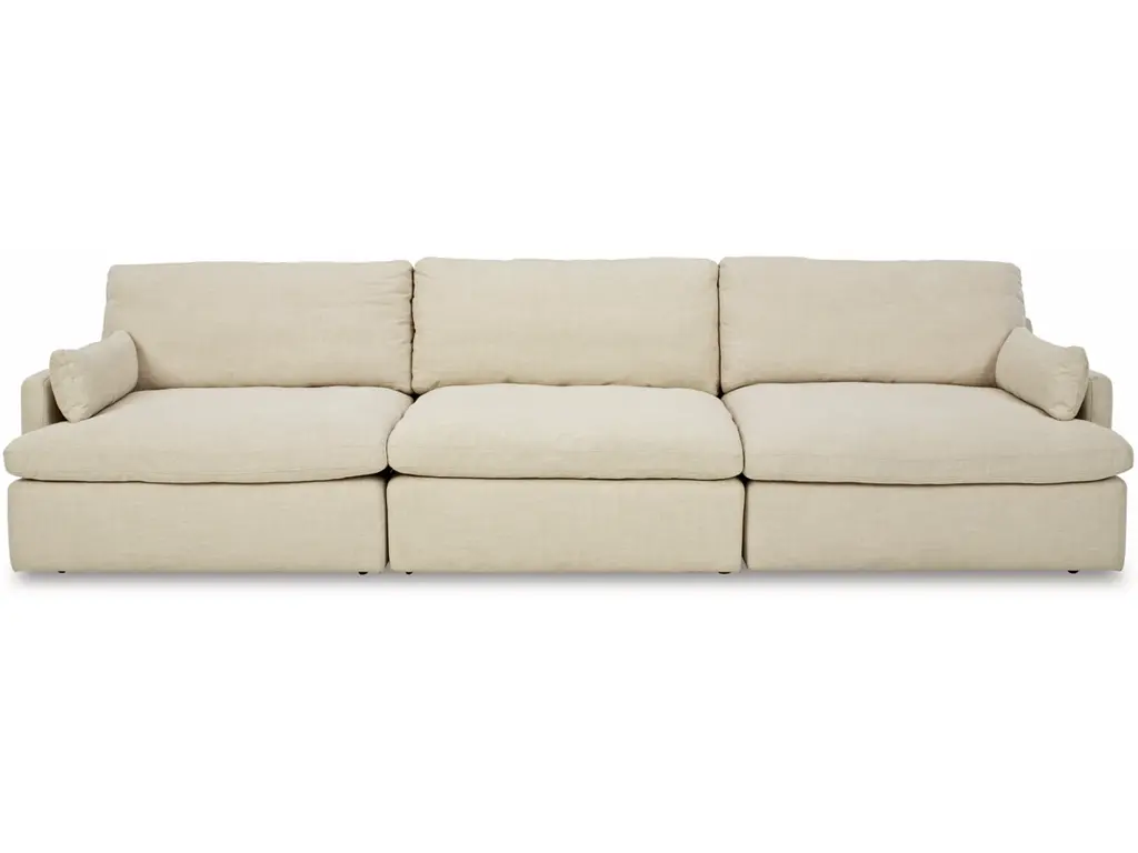 Blending a fresh, clean aesthetic with ultra-soft comfort that’s impossible to resist, this sofa sets the scene for living the dream. Whether your look is warm and cozy modern farmhouse or cool, crisp and contemporary, this masterfully crafted modular sofa tantalizes, with feather-fiber blend reversible cushions with pillowy plushness and a linen-like fabric that’s a breath of fresh air. Slim track arms and structural bolster pillows enhance the experience.