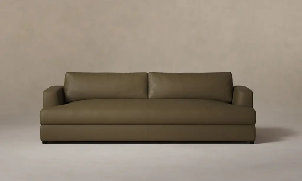 The Jones Sofa's low-lying, modular design recalls silhouettes from the 1970s. It has voluminous cushions and plush arms complete with flange seams for a tailored finish. Handcrafted in North Carolina.