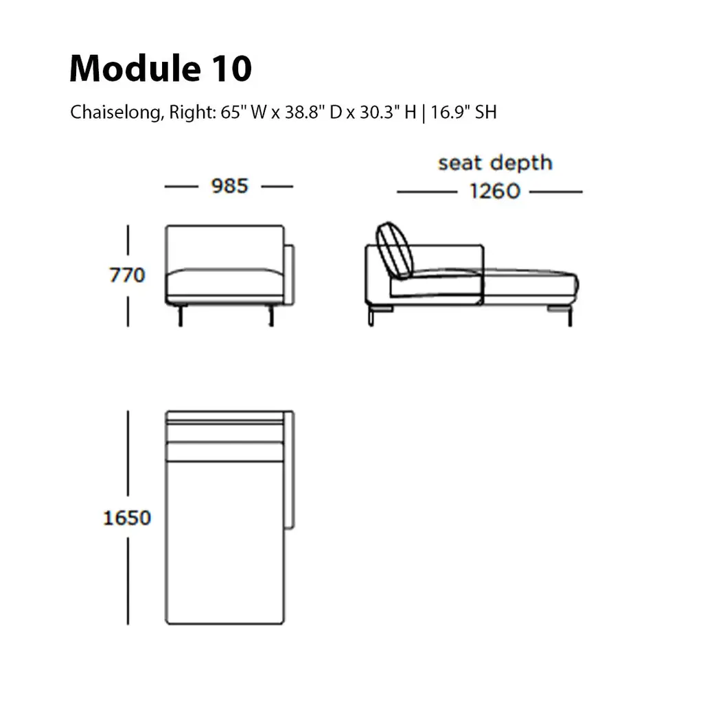 Contributing to an upright and poised seating experience, the Trace Sofa bridges sharp exterior lines with the comfortable firmness of the interior. Offered in 16 modules, the sleek legs crafted from black powder-coated steel introduce a sophisticated visual contrast.