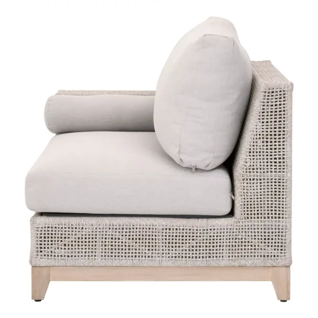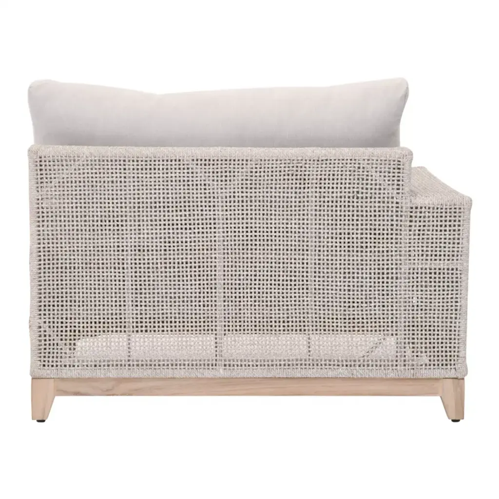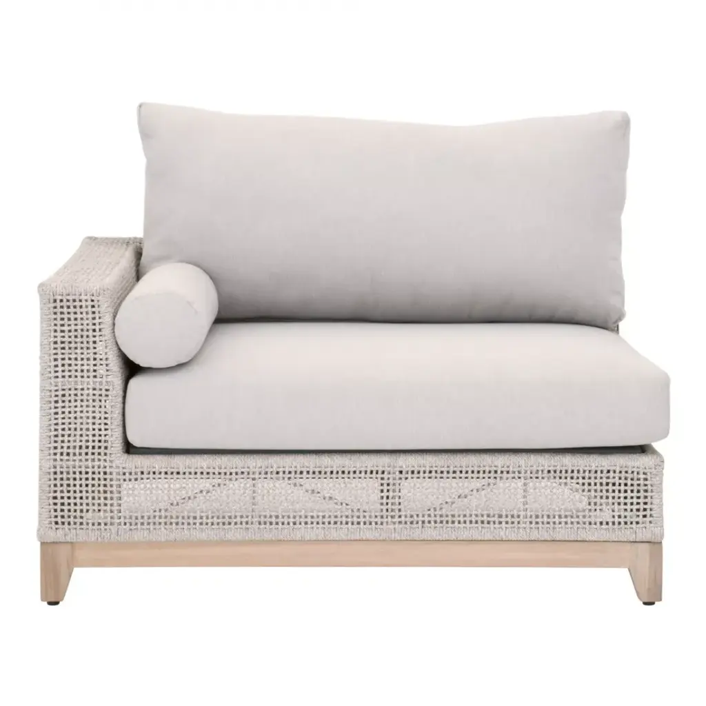 Tropez Outdoor Modular Left Facing 1-Arm Sofa Taupe & White Flat Rope, Performance Pumice, Gray Teak