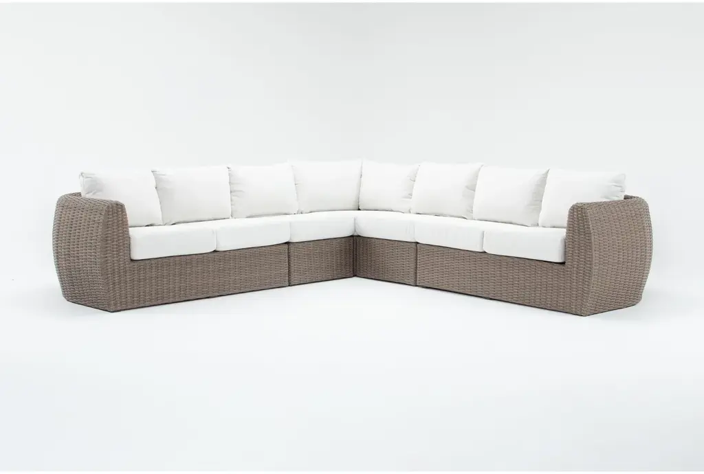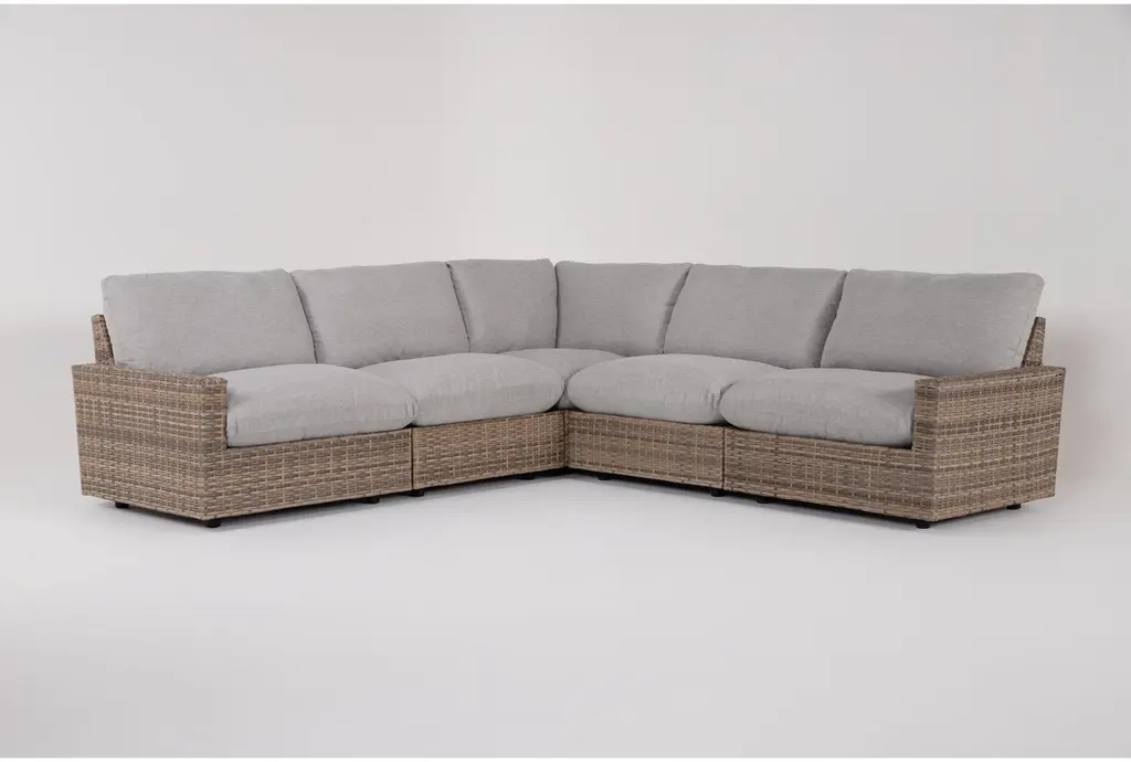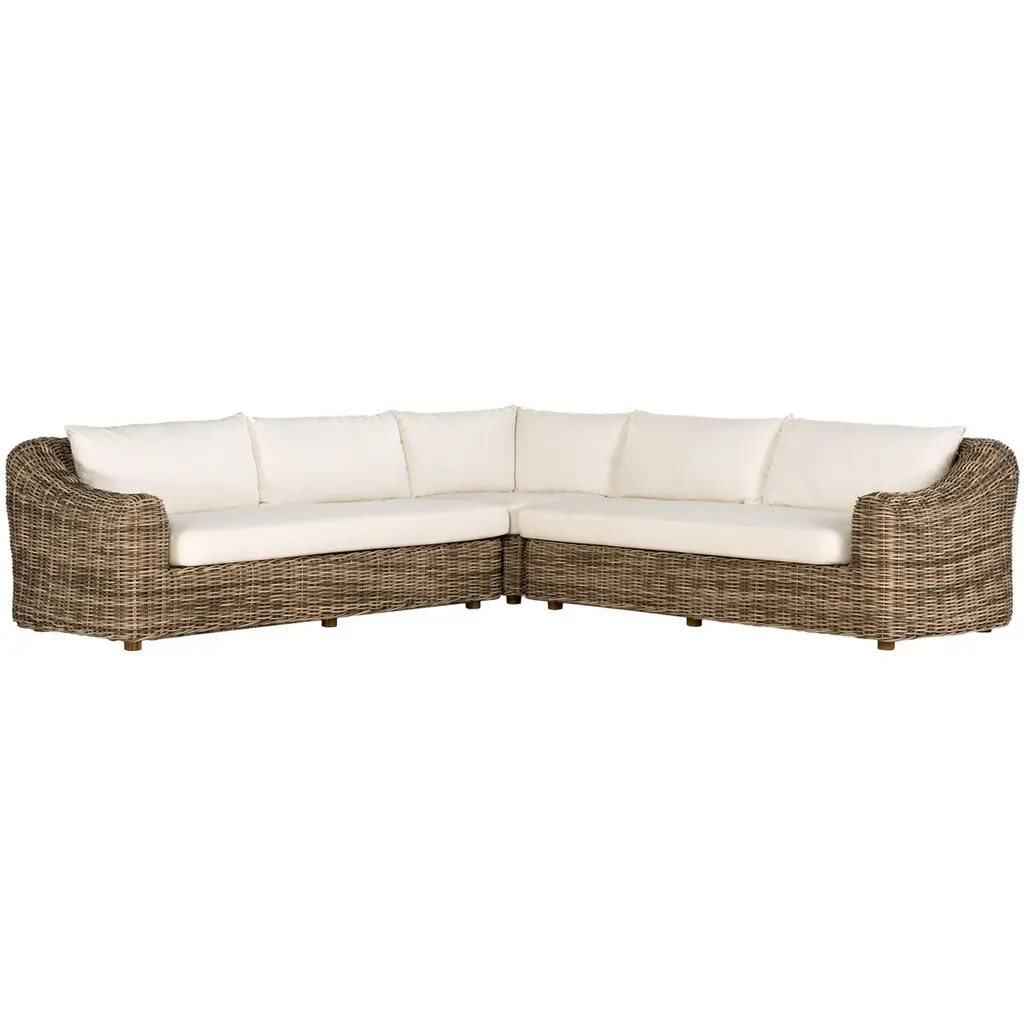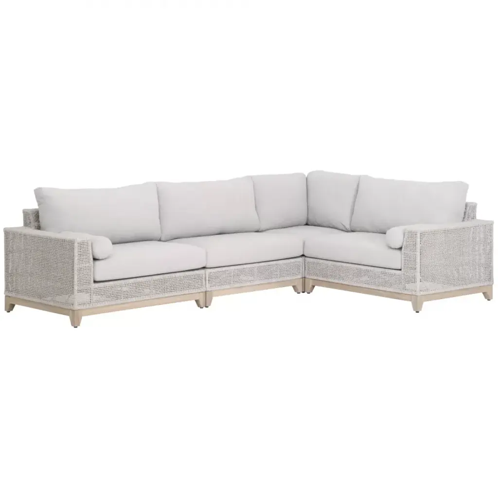 Tropez Outdoor Modular Left Facing 1-Arm Sofa Taupe & White Flat Rope, Performance Pumice, Gray Teak
