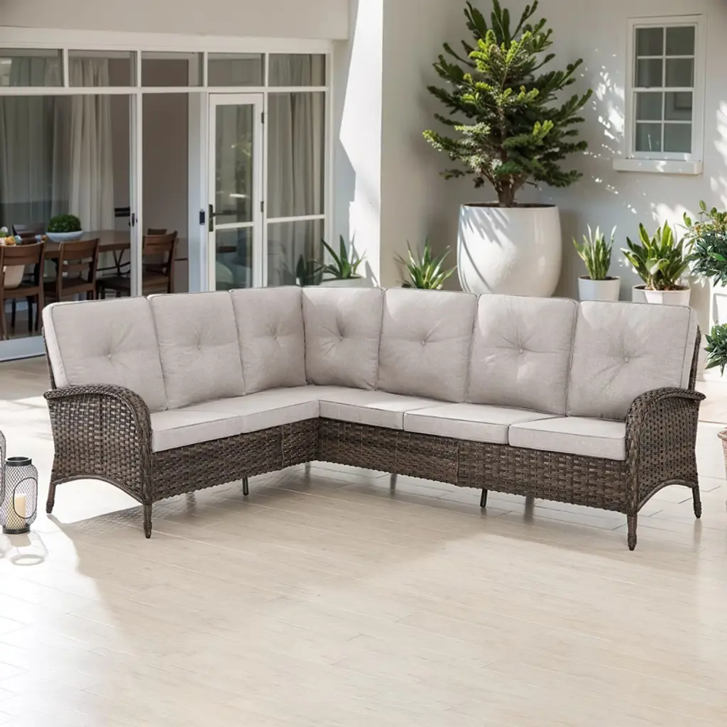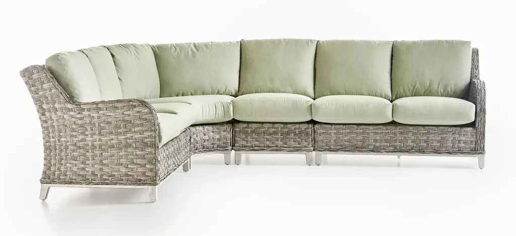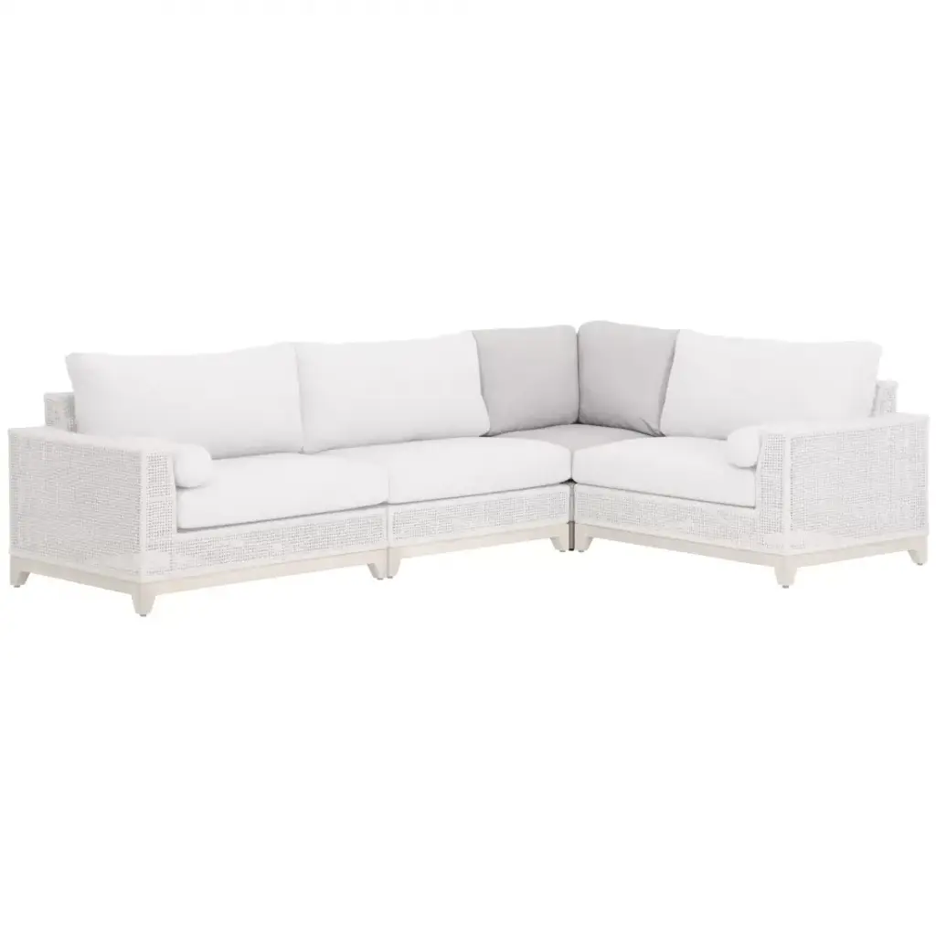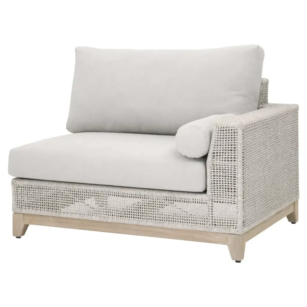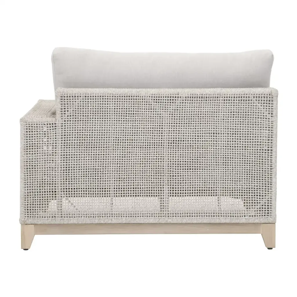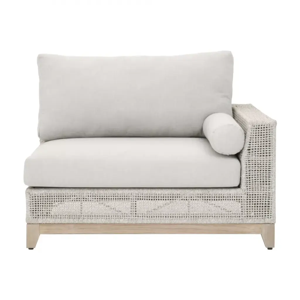 Tropez Outdoor Modular Right Facing 1-Arm Sofa Taupe & White Flat Rope, Performance Pumice, Gray Teak