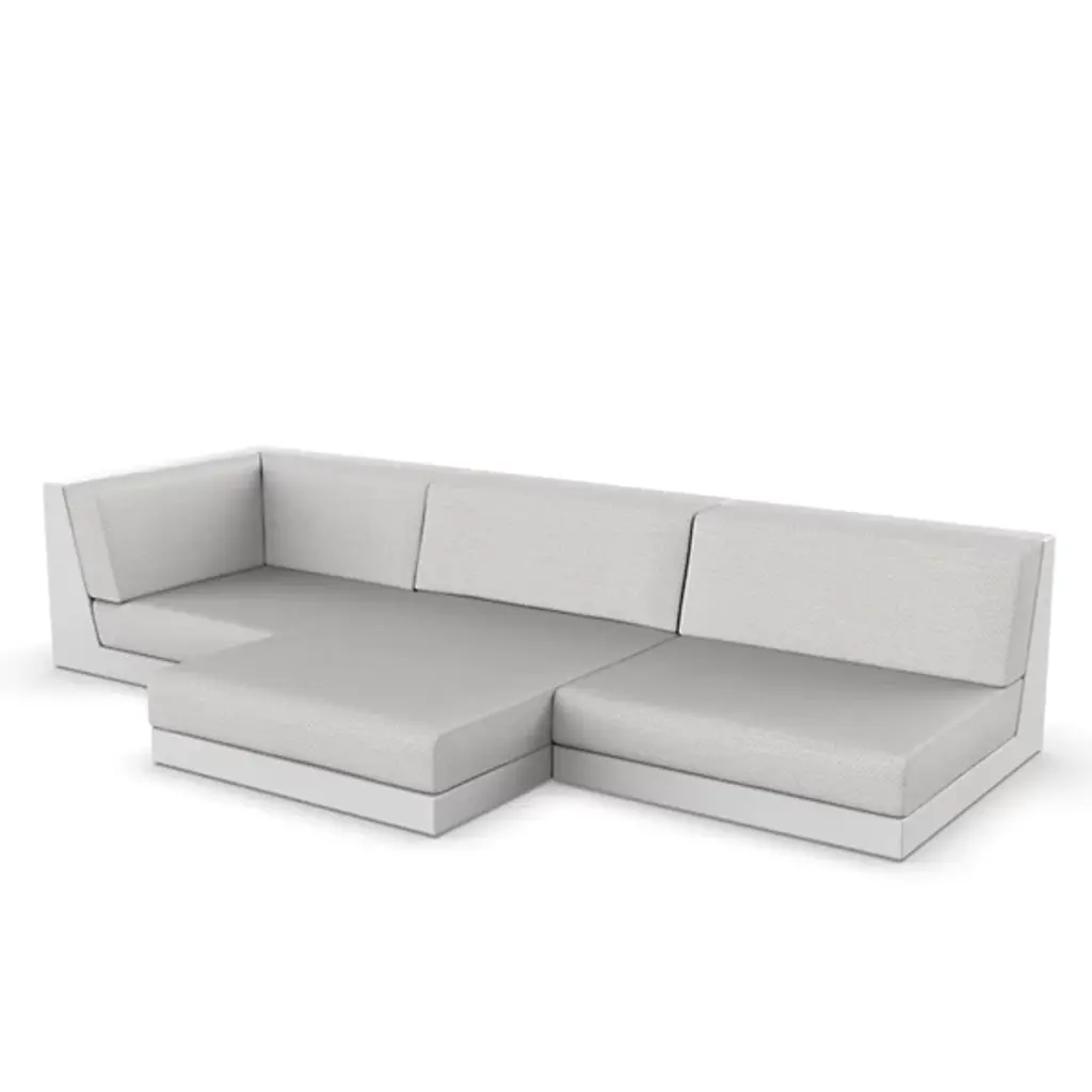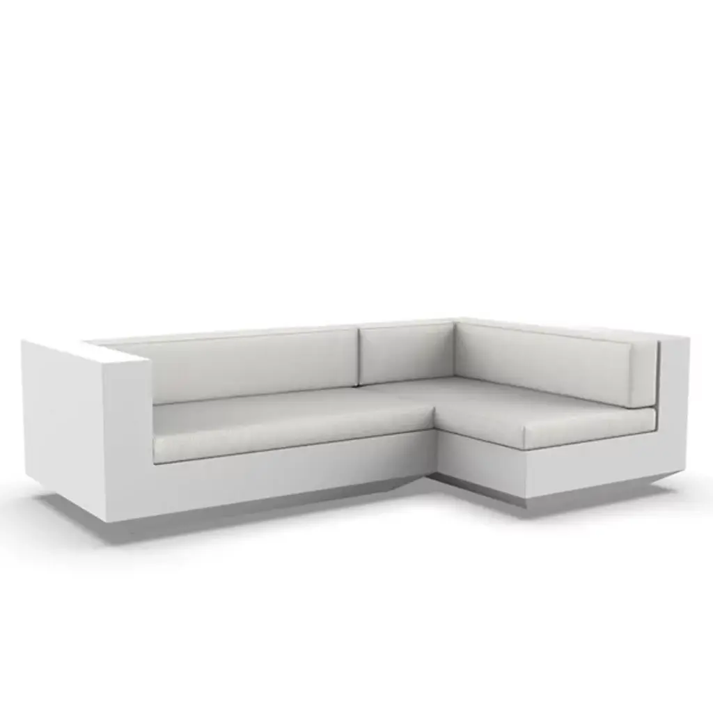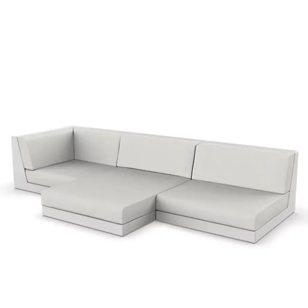 This Ulm 4 Seater Outdoor Modular Sofa by Vondom is the perfect combination of modern design and ergonomics. Its rigid structure and resilient support provide total comfort, while its contemporary and unique style pays tribute to the formal approach of the Ulm School. This sofa is made of rotational molded resin, linear low-density polyethylene, and soft acrylic outdoor fabric. It has a comfortable leather-like texture, making this sofa ideal for indoor and outdoor use.
