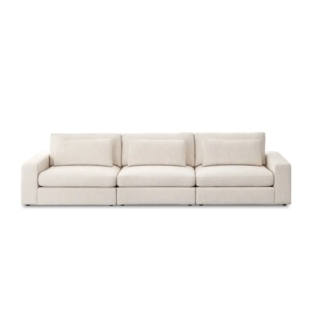 Using a simple expedient similar to Lego’s snap-on system, the height of the Up sofa’s backrest can be adjusted according to personal choice. Place the back cushions on top of the low backrest to create a higher backrest and a deeper seat. The particular shape of the cushions ensures maximum stability. The goose feather-padded cushions and armrests create a particularly soft, snug sofa. Also available with raw-edged leather upholstery. Fully removable covers.The designer Giuseppe Viganò is dedicated to the industrial design of furniture products and to the artistic direction of companies in the sector. He also provides graphic consulting for the production of catalogues, getting directly involved in the photography, page layout, communication and advertising pages. He designs trade fair layouts and permanent furniture shops or temporary areas for specific events and personally intervenes by indicating the choice of products and scenery design. In 2007 he started working with Saba Italia by endorsing several projects which embraced the whole company’s identity, he then became the artistic manager of the Company.Structure: Solid wood with variable-density polyurethane foam coating (21IM, 40IM and 30P), covered with cotton and polyester fiber 380gr/sqm. The arm padding is completed, on the upper part, by a feather layer. The seat is sprung with elastic straps reinforced with polypropylene.Feet: In black PVC 25 mm highPadding: The seat cushions are in washed and sterilized goose down, divided into compartments and covered with white 100% cotton fabric, with a polyurethane foam 40P core. The back cushions are filled with washed and sterilized goose down, divided into compartments and covered with white 100% cotton fabric, with a polyurethane foam 35P core.Additional information:Material: Wood, polyurethane foam, PVC, upholsteryLegs finish: Black PVCUpholstery: Vip, AT192 A8 - col.16Dimensions: 315 W x 100 D x 86 H cmSeat height: 40 cmArmest height: 66 cmAvailable in other upholstery options: C, E, extra, lusso, special, top, elite, royal, pelle club, pelle florida, pelle master Available in other size option: Small, largeAvailable in other structural options