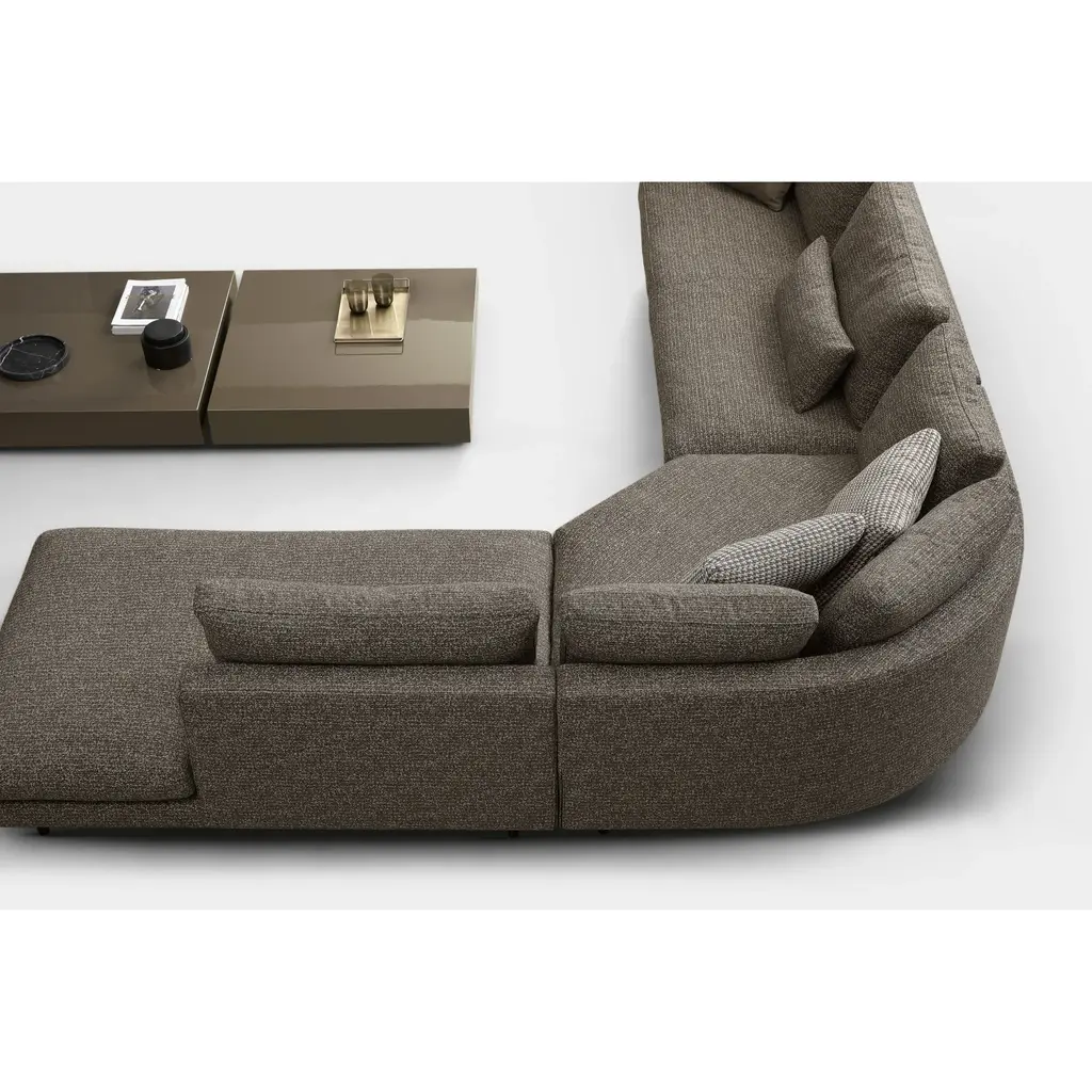 Introducing the Dema Easy Upholstered Modular Sofa. Crafted with a solid spruce frame and dark brown varnished legs, this sofa exudes luxury. Sink into multi-density polyurethane foam seat cushions with goose down quilting, while the backrest offers ultimate comfort with its goose down filling. Fully removable covers ensure easy maintenance.