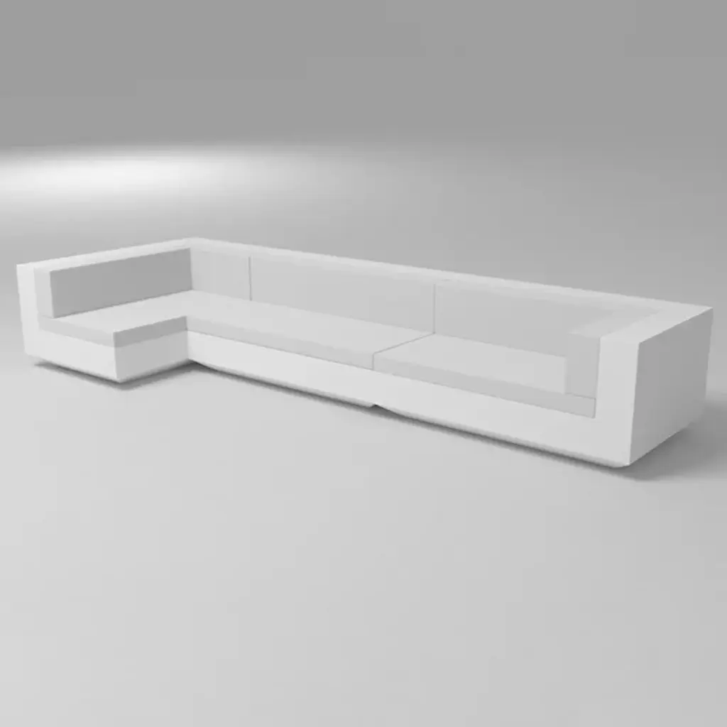 The Vela 3 Seater Outdoor XL Modular Sofa by Vondom is the perfect blend of style and comfort. Its unique extended L shape design combines durable structures and soft forms, offering the whole family a space to rest for total comfort. Crafted from rotational molded resin, linear low-density polyethylene, and soft acrylic outdoor fabric. It is suitable for indoor and outdoor use, and it makes the perfect piece for adding a touch of modernity to your space.