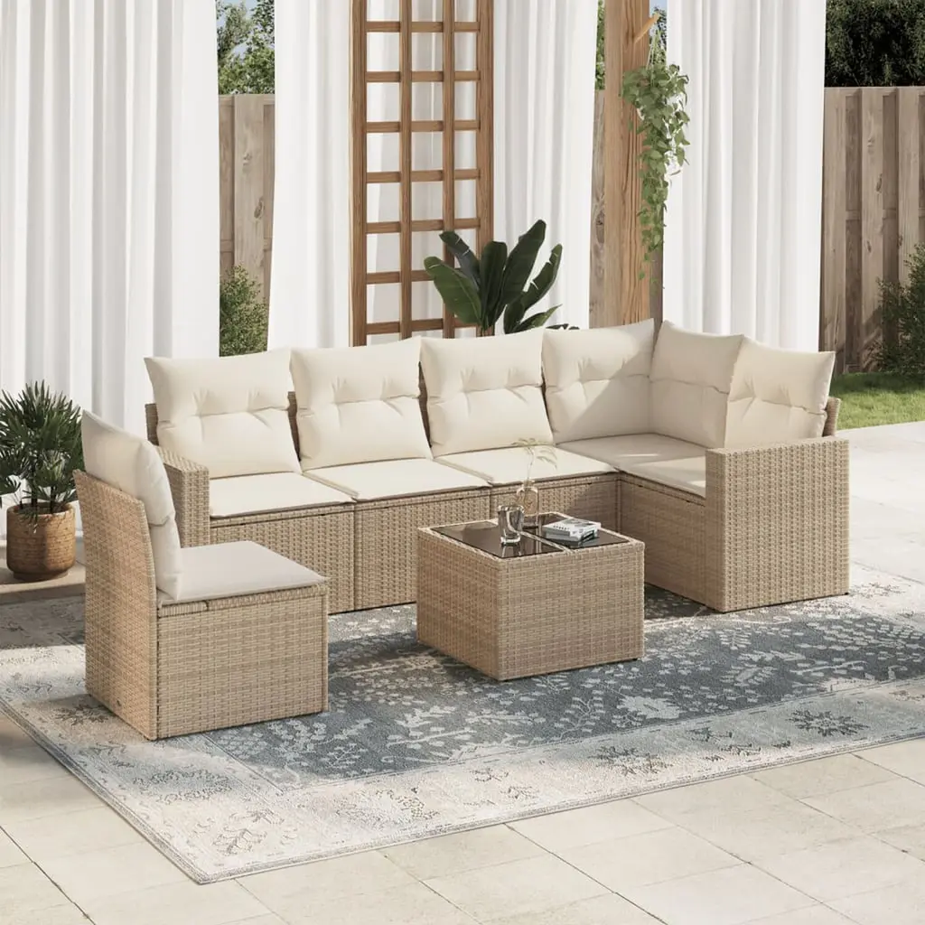 This garden sofa set, featuring seven pieces, offers a chic and stylish seating choice for outdoor areas. With its modern design in beige and cream, it's a perfect fit for your balcony or patio, providing both comfort and a striking centerpiece for gatherings. Stylish Aesthetic: The blend of beige and cream creates a sleek visual that lifts any outdoor spot. Comfy Cushions: Relish the softness of high-quality seat and back cushions, perfect for hours of relaxation. Durable Materials: Made from synthetic poly rattan, the furniture resists fading and wear, making sure it lasts long. Practical Design: The modular layout lets you tweak the setup for different outdoor spaces, whether for big parties or quiet evenings. Easy Maintenance: The removable cushion covers are washable, making it easy to keep your outdoor area looking sharp.