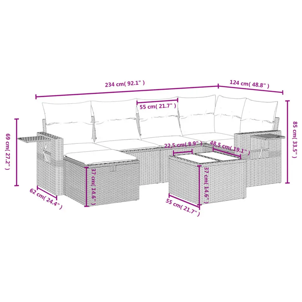 This 6-Piece Modular Garden Sofa Set is a must-have to up your outdoor relaxation game. Made from durable, weather-proof poly rattan and featuring a modern design, it nails the balance between style and function, making it great for patios, balconies, and gardens. With enough space for up to six people, it’s perfect for family and friends to kick back and enjoy the outdoors, whether you're sipping drinks at a garden party or just chilling out in the sun. Weather-Resistant Material: The tough poly rattan fabric ensures your sofa lasts, even in tricky weather. It's UV-resistant too, so no worries about fading; your furniture will stay looking sharp for ages.Versatile Configuration: The modular design lets you rearrange it however you want, so it fits right into your space and matches your style. Perfect for hosting friends or family events comfortably.Easy Maintenance: The removable covers zip off easily for washing, so keeping it clean is a breeze. This feature helps keep your space fresh and inviting for all your outdoor lounging.Sleek Modern Style: The modern look fits in beautifully with any outdoor setting. The clean lines and stylish color scheme match natural surroundings, giving your garden a classy vibe.Generous Seating Capacity: With room for up to six folks, this sofa set is made for socializing and chilling. Perfect for outdoor dining or lounging, it creates a comfy spot to enjoy time with loved ones.