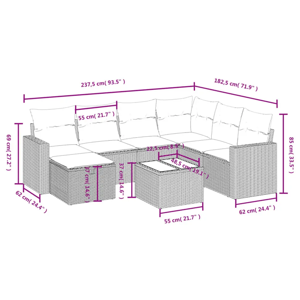 This 8-piece modular garden sofa set is the perfect touch for any outdoor area, providing comfort and style for gatherings. Its modern design comes in a chic beige finish that adds a touch of elegance to patios, backyards, or terraces, making it a welcoming spot for friends and family to relax and chat in the sun. Spacious Design : Fits up to 8 folks, this sofa set's perfect for big gatherings and ensures everyone's got their space to enjoy. Quality Materials : Built with poly rattan and powder-coated steel, this furniture holds up to the weather while keeping its stylish look. Comfortable Cushions : Each piece comes with comfy cushions that are easy to clean, stepping up comfort for outdoor relaxation. Stylish and Elegant : The beige and cream colors mix nicely with any garden or patio vibe, creating a chill outdoor getaway. Easy Maintenance : The removable cushion covers and wipeable surfaces make upkeep a breeze, letting you enjoy your outdoor chill time without stress.