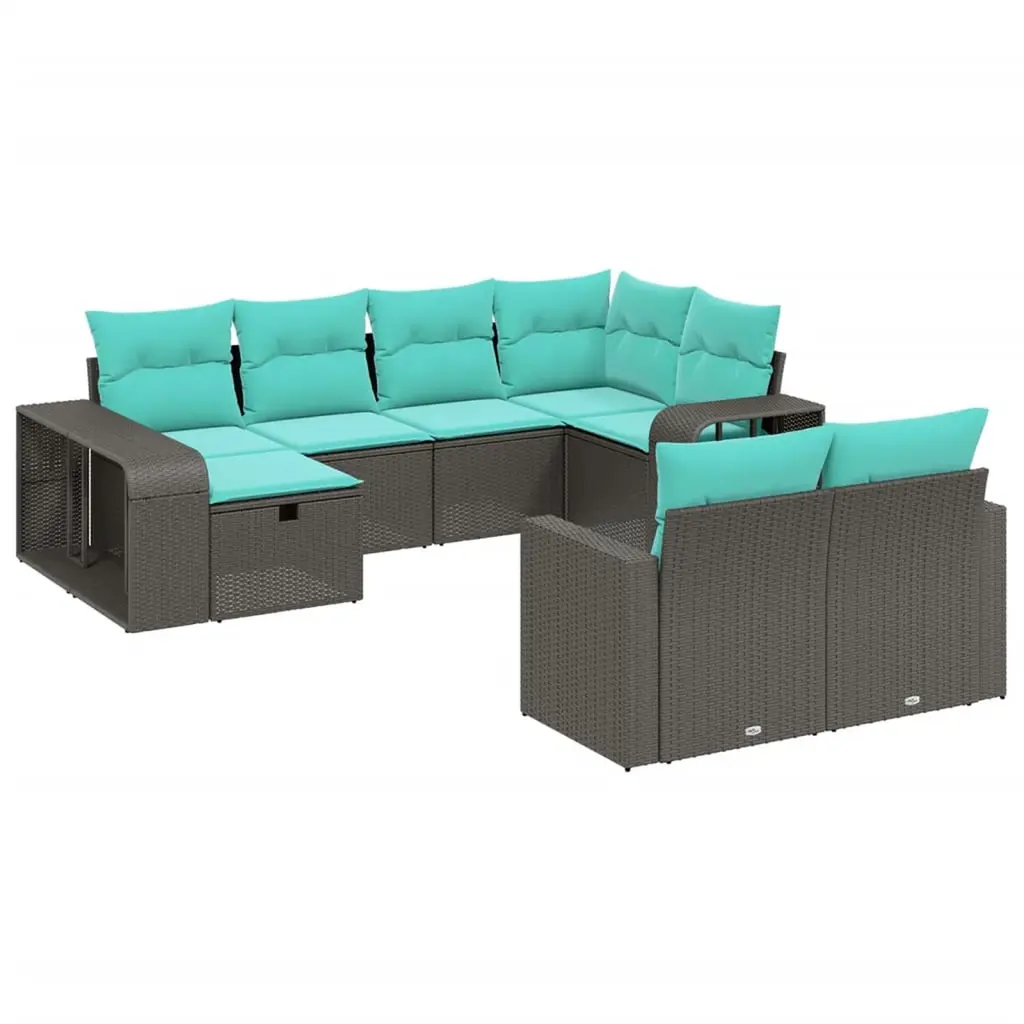 This modular garden sofa set is all about style and practicality, perfect for outdoor spots like backyards, terraces, or balconies. Made from tough PE rattan and powder-coated steel, it not only jazzes up your outdoor space but also offers comfy seating with its cushy cushions, designed to fit up to 6 people while welcoming friends and family to chill together. Spacious Seating: This set comfortably seats 6 to 8 people, perfect for social gatherings and family relaxation sessions in your garden. Stylish Modern Look: Featuring a sleek, modern design, this sofa set enhances any outdoor setting while providing a cozy atmosphere for dining or lounging. Comfort-Focused Cushions: Plush cushions with removable covers ensure a comfortable seating experience while allowing for easy maintenance and cleaning. Durable Construction: Built from high-quality materials including UV-resistant PE rattan and powder-coated steel, ensuring longevity and resistance against fading and weather elements. Versatile Use: Suitable for diverse outdoor settings, from patios and balconies to large backyards, making it an excellent addition to any outdoor living area.