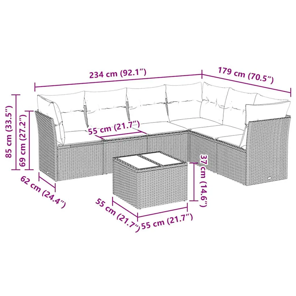 This 7-piece modular garden sofa set brings style and practicality, making it a stunning addition to your outdoor hangout. Made from durable PE rattan and backed by a solid powder-coated steel frame, this setup not only looks great on your patio or garden but is also perfect for chilling outside—great for lounging with pals or hosting family gatherings. Versatile Seating Arrangement: The modular setup lets you adjust the layout to perfectly match your space and needs. Need a cozy corner or a spacious layout for a big group? This set has got you covered.Weather-Resistant Fabrics: Each piece utilizes UV-resistant and water-repellent materials, ensuring they last in all weather. You can leave it outside in the summer showers without a care.Comfortable Cushions: The seats and backs come with thick padding for ultimate comfort, perfect for lounging. They have zip closures for easy cleaning.Integrated Storage: Each seat features clever storage space to keep your outdoors tidy. Stash cushions, tools, or other items in there.Stylish Finish: The matte look and woven rattan texture keep it modern and chic, blending in perfectly with any style from boho to contemporary.