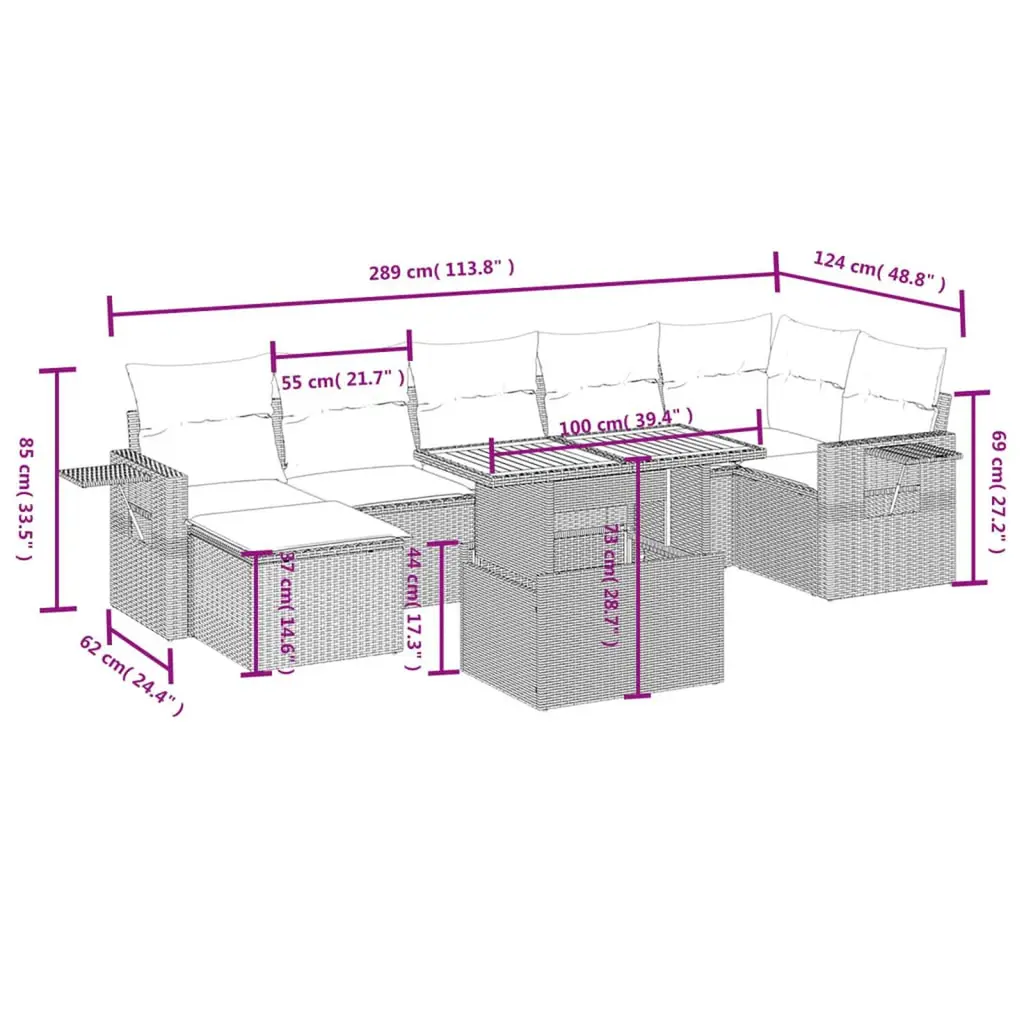 This 8-piece garden sofa set is all about style and practicality, making it perfect for brightening up your outdoor or balcony space. Built from high-quality poly rattan and solid acacia wood, this seating setup not only lasts long but also creates a warm vibe for gatherings or chill time. Spacious Seating: Designed to comfortably fit 7 people, this sofa set invites your friends and family to enjoy lazy mornings or evenings together.Contemporary Aesthetic: With its sleek modular design and black and cream color scheme, it boosts any decor style, making it a classy addition to any garden or patio.Robust Construction: Built with powder-coated steel frames and weather-resistant materials, this set stands up to the elements for lasting use through the seasons.Comfort-Ready Cushions: These generous cushions offer a plush spot to sink back into, and they’re removable and machine washable to keep everything looking fresh.Customizable Layout: The modular design lets you switch up your sofa’s layout to suit different gatherings or events.