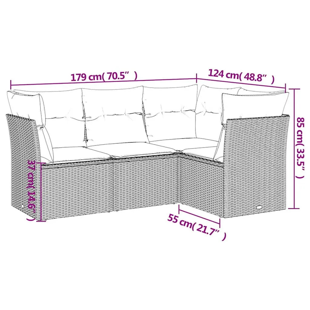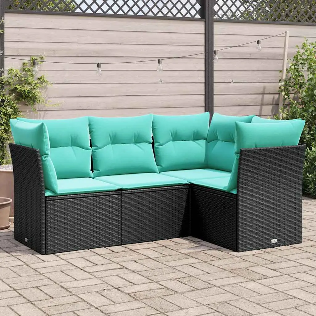 This 4-Piece Modular Garden Sofa Set transforms outdoor relaxation with its sleek look and high-quality materials. It’s perfect for balconies, backyards, and terraces, creating a cozy atmosphere for casual hangouts and peaceful solo time, allowing you to soak up your outdoor surroundings. Modular Flexibility: The modular design lets you easily mix and match the seating layout according to your needs. With sections that can be reconfigured, whether you want a sectional setup or a classic look, this adaptable set has you covered.Premium Comfort: Each piece in the set comes with cushions that resist weather, ensuring maximum comfort while you relax outdoors. The cushions have removable covers with zippers, making it easy to keep them fresh and clean.Durability: Constructed from UV-resistant materials, this sofa set can withstand harsh sunlight without falling apart or fading, making it a great choice for sunny patios and backyards. The sturdy steel frame with a durable powder finish adds extra longevity to your outdoor furniture.Stylish Look: The modern design, with its clean lines and woven texture, adds charm to any outdoor area while offering ample space for family and friends. The black and blue color combination elevates its appearance, fitting perfectly with various outdoor styles.Easy Care: Designed for convenience, this outdoor sofa set requires minimal maintenance. Simply cover it when not in use to protect it from rain and sun, ensuring it looks beautiful year-round.