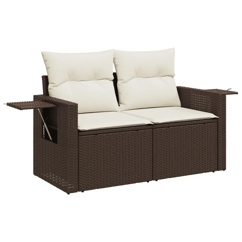 This 9-piece modular garden sofa set changes the game for outdoor lounging with its trendy looks and practical design, perfect for gatherings or quiet mornings enjoying the breeze. It features a mix of rich brown poly rattan paired with plush beige cushions, enhancing your outdoor areas while providing plenty of space for chilling out and entertaining. Customizable Configuration: The modular design allows you to easily adjust the sofa arrangement to suit any outdoor space or occasion. Whether you need a spacious lounge or a compact seating arrangement, this set adapts to your needs with ease. Comfortable Cushions: Each piece comes with thick, soft cushions secured with a zipper for removable covers. This ensures convenience in maintenance, allowing them to be easily cleaned, providing both comfort and practicality. Durable Material: Crafted with water-resistant and UV-resistant Poly Rattan, this sofa set is built to last against the rigors of outdoor use while maintaining its stunning appearance. No need to worry about fading or wear from direct sunlight. Weather-Resistant: The set includes features designed specifically for outdoor enjoyment, with cushions that are durable and able to withstand elements. Bring cushions inside during heavy rains to prolong their life. Spacious Design: With enough room to seat up to nine people comfortably, this garden sofa set is perfect for family gatherings or entertaining guests, turning your patio into a social hub.