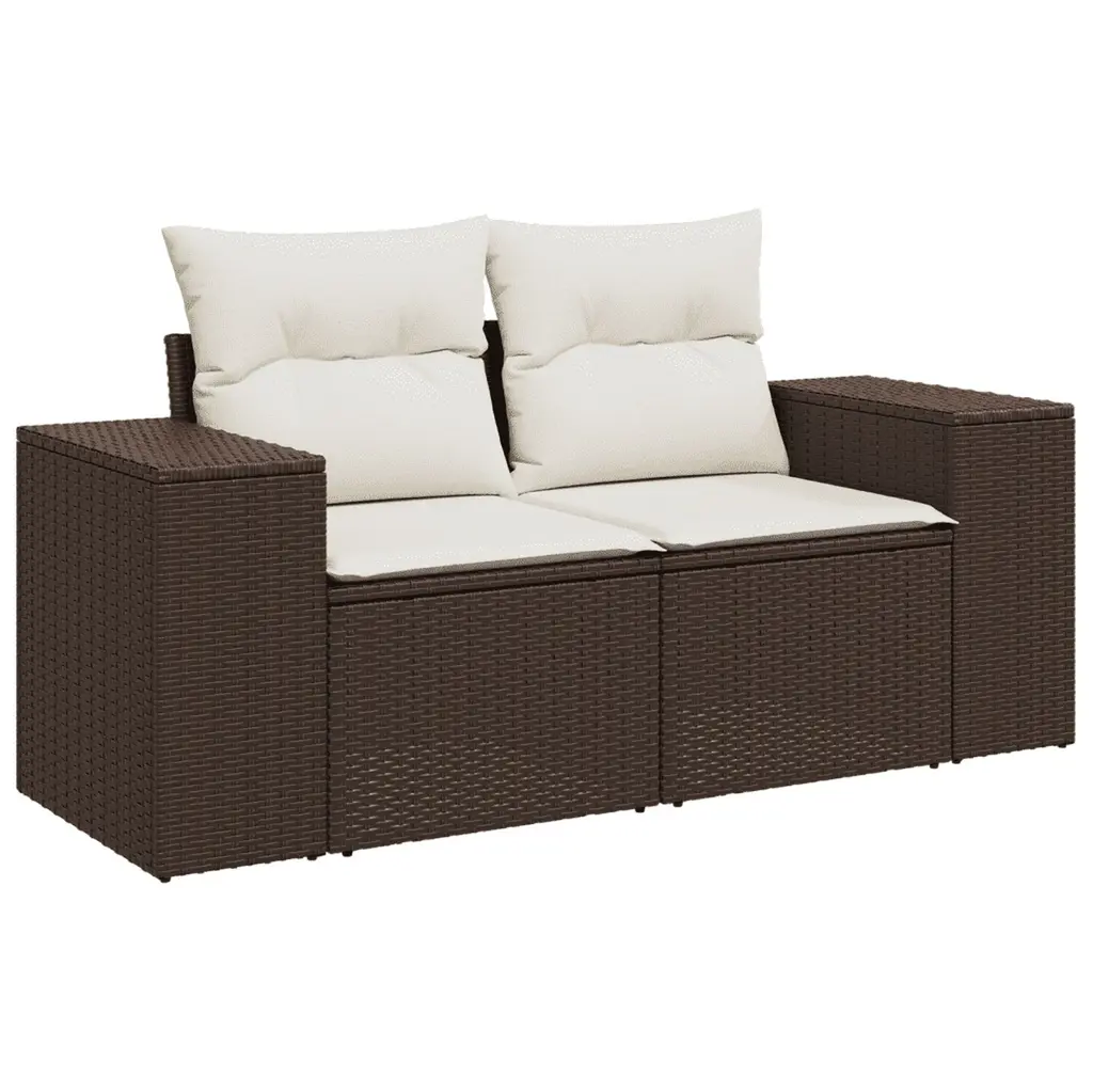 This 8-piece modular garden sofa set is a fantastic addition to any outdoor area or backyard, perfect for enjoying warm summer evenings with your loved ones. Made from high-quality poly rattan and finished with tempered glass, it merges modern looks with practical design to create a stylish yet comfy spot for chilling and socializing. Open-Concept Design: The innovative modular design lets you change the layout to suit any occasion, making your outdoor seating adaptable to any setup. This flexibility helps you create a tailored entertaining space that’s perfect for any gathering.Durability: Made with weather-resistant synthetic materials, this sofa set can handle whatever nature throws at it, looking great year after year. The powder-coated metal frame offers extra protection against rust.Comfort Features: Each cushion has a removable cover secured with a zipper, making it easy to wash and keep seating fresh. The cushions are designed for top comfort, so you can relax for ages in your outdoor sanctuary.Spacious and Accommodating: Designed to seat eight people, this garden sofa set is perfect for family functions or friendly meet-ups. The roomy seating area encourages socializing, making your outdoor events unforgettable.Stylish Aesthetic: With a trendy brown finish and soft white cushions, this set adds a stylish touch to any patio or garden space. The clear tempered glass tabletop brings a bit of sophistication, making it both practical and visually appealing.