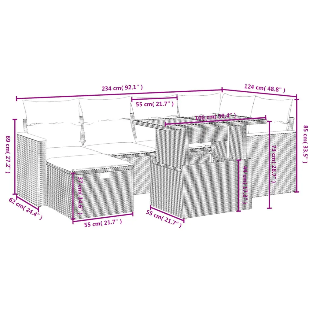 Vidaxl Garden Sofa Set Grey Pe Rattan 7 Piece Modular Garden Sofa Set