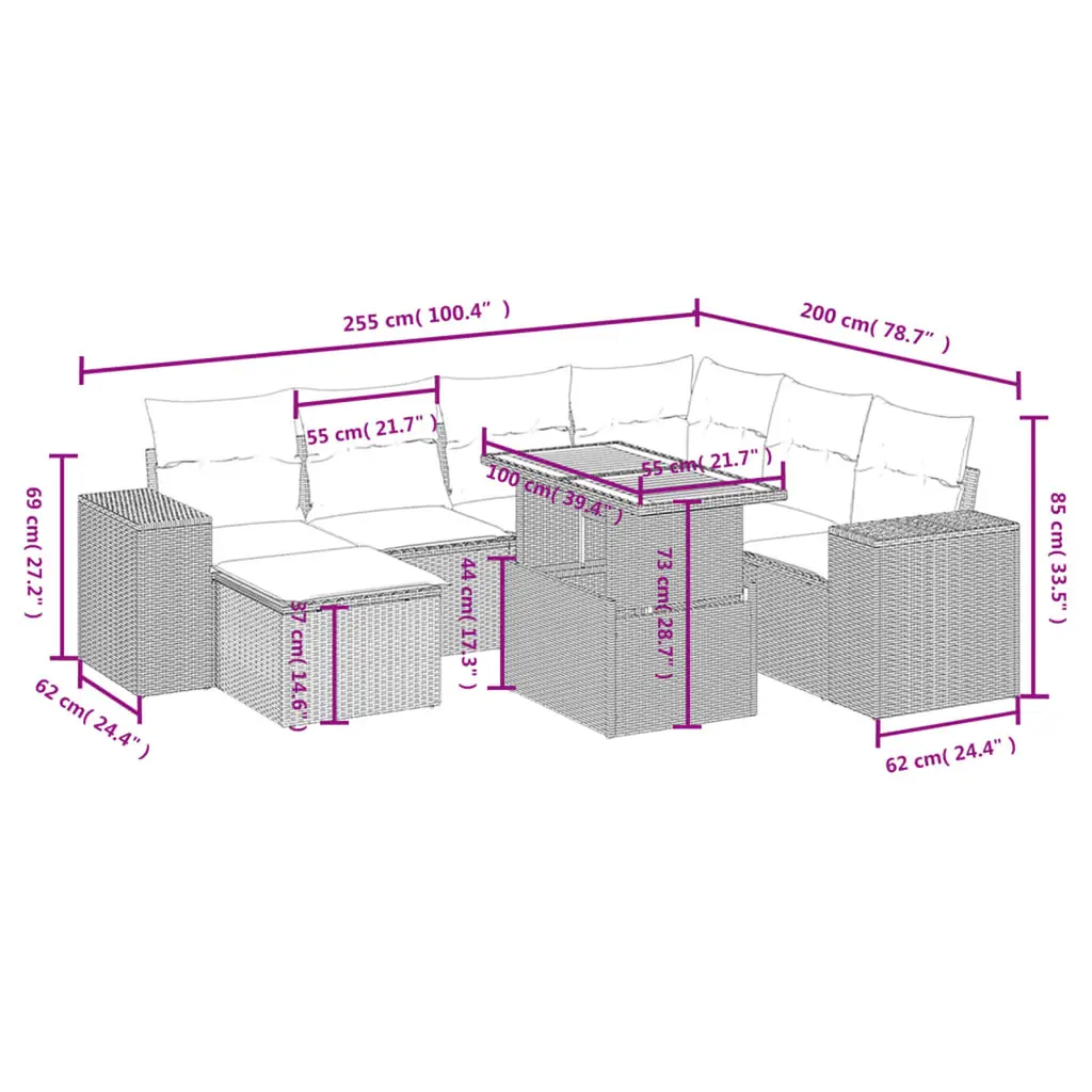 This 8 Piece Garden Sofa Set is a lovely choice for outdoor lounging and entertaining, perfect for your patio, terrace, or backyard. It's got a modern design that shows off clean lines and stylish grey poly rattan, so it not only gives you a comfy seating area but also looks great in your outdoor space, making it the prime spot for family and friends to gather. Modular Flexibility: You can easily rearrange the sofa set to fit your space. Whether it’s for a BBQ or a quiet afternoon, this design lets you create a seating arrangement that's just right for your outdoor area. Robust Construction: The frame’s powder-coated steel means this sofa set can handle the weather while staying looking sharp. The quality materials keep it strong and stable, ready for all your entertaining needs all year round. Comfy Seating: With seven plush cushions and adjustable armrests, this garden sofa set is super cozy. It's perfect for lounging on sunny days or curling up with a book in the shade, letting you kick back in style. Easy Maintenance: The removable cushion covers have zippers, making them a breeze to clean. Just wash them as needed to keep the sofa set looking fresh and new, making it practical and easy to manage. Cool Modern Style: The smooth feel and minimalist design of this sofa set match any outdoor decor. Its neutral grey goes well with colourful garden backdrops, creating a warm vibe that's just right for hanging out or quiet nights under the stars.
