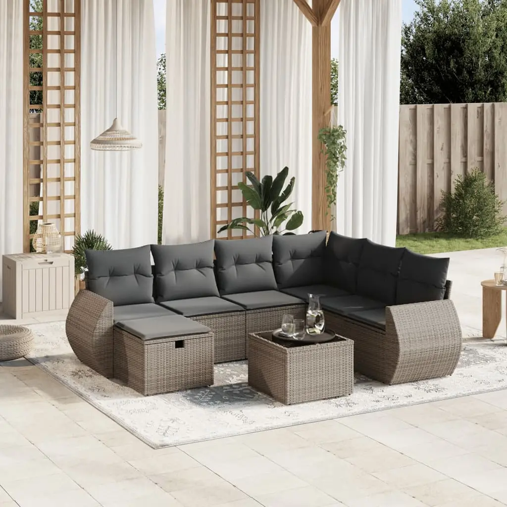 This 8-Piece Modular Garden Sofa Set offers a fab mix of comfort, functionality, and style, making it a top pick for your outdoor living area. The smart, grey poly rattan finish is sleek and gives off a modern vibe, perfect for gatherings or chill evenings on the balcony. Modular Versatility: One of the best bits of this sofa set is its modular design, letting you easily mix up the layout to fit any outdoor area or occasion. Whether you're throwing a bash or enjoying a quiet night, switch up the seating to fit up to 8 people comfortably.Durable and Weather-Resistant: Built from high-quality poly rattan and powder-coated steel, this outdoor furniture set is ready to tackle all kinds of weather. The UV-resistant features keep it looking good over time.Comfort and Convenience: Each seating piece comes with cushions that have removable covers, making cleaning dead easy. Enjoy the plush comfort provided by polyester fiberfill while keeping the set looking fresh.Stylish Tempered Glass Tabletop: With a generous tempered glass top, the included table adds a bit of class while providing a great space for drinks, snacks, or books, blending seamlessly with the sofa design.Easy Maintenance: To keep your outdoor set looking fab, just wipe it down with a damp cloth and store it away when the weather turns. Use a protective cover when not in use to help it last longer, keeping your sofa looking great in your outdoor setting for ages.