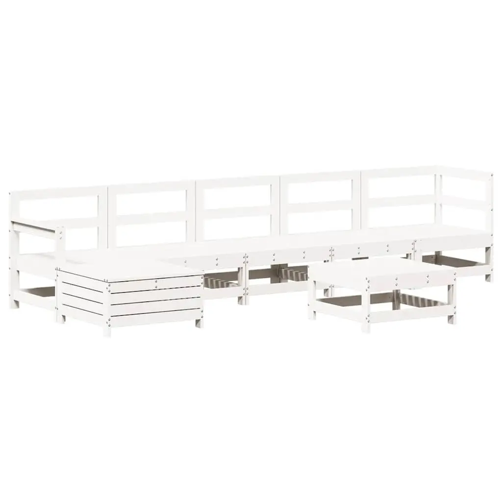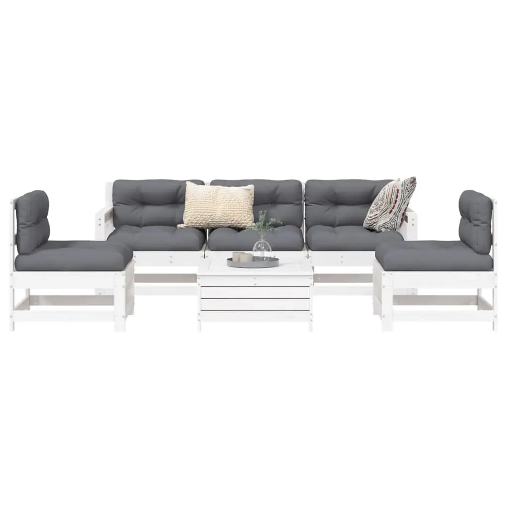 Vidaxl Garden Sofa Set White Solid Pine Wood 6 Piece Set Modular