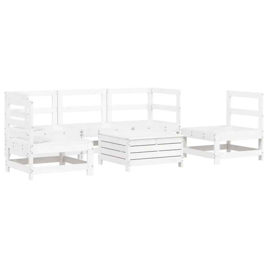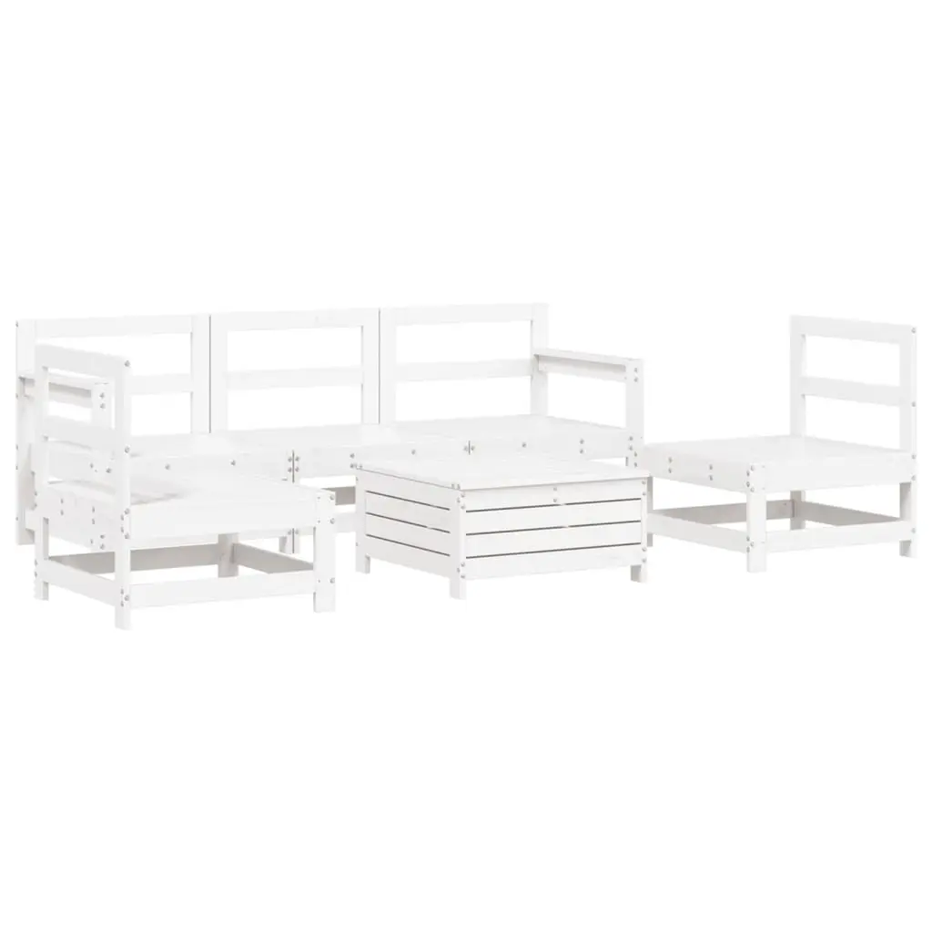 This garden sofa set gives you a great outdoor seating option with its crisp white look that fits nicely into any garden or balcony. Made from solid pine wood, it has a lovely rustic vibe that lights up outdoor living at its finest, giving you a comfy spot for chilling, hanging out with friends, or just relaxing in the summer sun. Modular Configuration: Each piece can be moved around to fit your outdoor space, giving you options for different layouts. You can change it up for parties or lazy afternoons.Sturdy Construction: Made from tough solid pine wood, this outdoor sofa set can handle the weather while giving a comfy spot for up to six people, ideal for barbecues or family hangouts.Functional Footstool: The footstool isn't just for resting your feet; it can also serve as a coffee table, so you've got a handy spot for drinks and snacks while keeping everything looking good.Stylish Rustic Finish: The wood's rustic finish brings a natural and inviting vibe, making this set a lovely addition to gardens or patios, blending in well with nature.Ideal for Summer Use: Perfect for outdoor fun in warmer weather, this sofa set makes spending quality time with family and friends a breeze while enjoying the fresh air and beautiful weather.