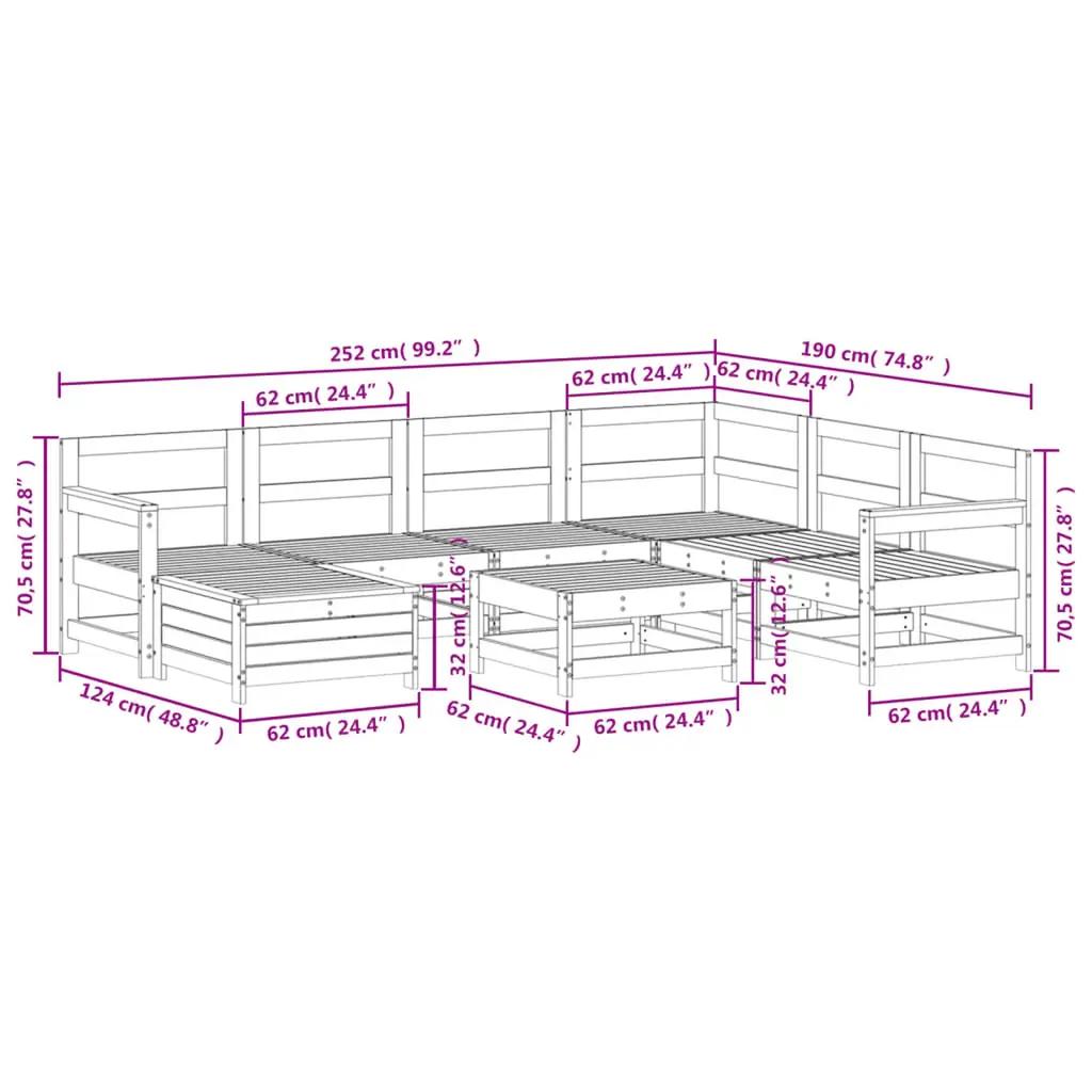 This lovely 8-piece garden sofa set is a fab addition to your outdoor space, blending style and practicality. Its modular design means you can arrange it in loads of ways, perfect for entertaining friends or just chilling out, all while making your garden, patio, or terrace look even better. Roomy Seating: Fits up to six people, so this outdoor set gives you plenty of space for family and friends. Whether it's a sunny day or a garden party, you won't be stressing about seats. High-Quality Solid Pine Construction: Made from tough solid pine wood, this sofa set is built to last against the weather. The breathable material keeps you cool on warm days, and it feels smooth for extra comfort. Rustic Charm: The rough finish highlights the wood's natural beauty, showing off its unique grains and knots, adding a lovely touch to your outdoor decor. It's perfect for creating a warm, inviting vibe. Flexible and Modular: You can rearrange the pieces to fit your space or occasion. Whether you want a compact setup for a small terrace or a large arrangement for a big gathering, it's all good. Low Maintenance: To keep it looking fresh, just wipe with a damp cloth and give it a wood treatment from time to time. A cover for outdoor use will help keep it in great shape for longer.