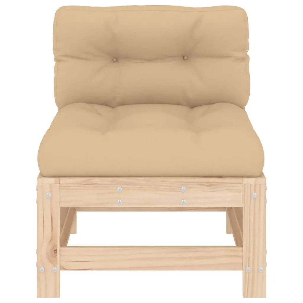 Vidaxl Middle Sofa Beige Solid Pine Wood Modular Middle Sofa