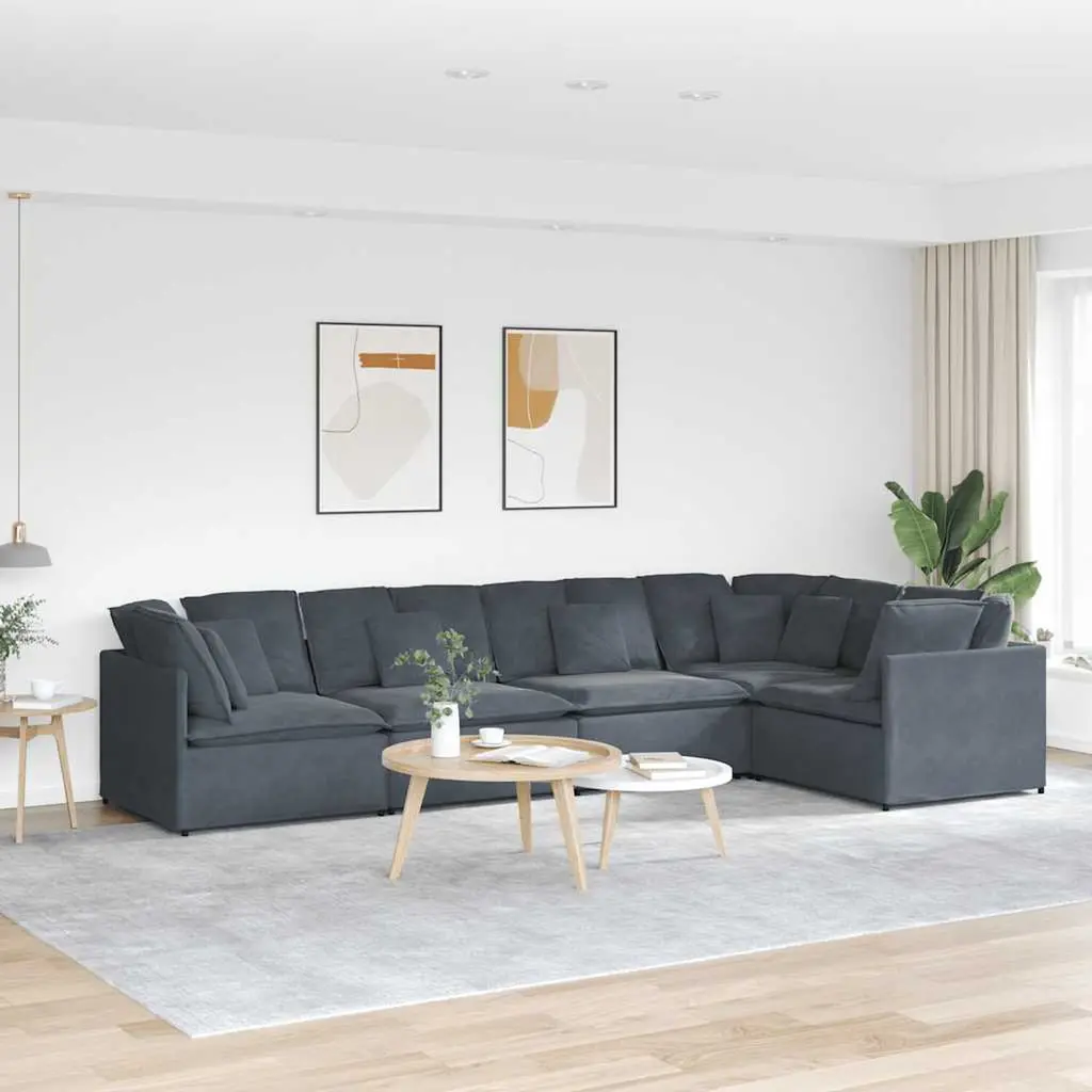 This velvet modular sectional sofa is all about modern style and comfort, perfect for sprucing up any living room. It caters to all sorts of seating arrangements, making it a stylish and inviting spot for casual lounging, family gatherings, or even solo reading sessions. Flexible Setup: The modular design lets you rearrange the sofa to fit different spaces and styles.Luxurious Feel: Soft velvet upholstery feels amazing and adds a touch of class to your living area.Roomy Seating: Comfortably fits up to five people for social gatherings.Stylish Dark Hue: The dark grey color blends well with various decors, making it a versatile choice.Easy to Clean: The removable cushions make for hassle-free maintenance while ensuring it stays chic.